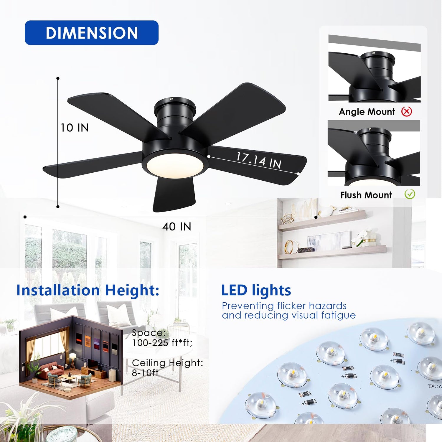 - CONVENIENT REMOTE CONTROL AND APP: Easily control ,modern low profile ceiling fan and lighting functions from anywhere in the room with the included remote control or through our user-friendly mobile app.