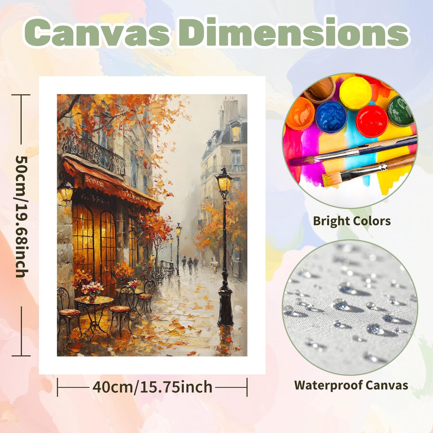 - 【High-quality materials】Our Street Cafe Painting by Number kit uses high-quality acrylic paint to ensure bright and long-lasting colors that are not easy to fade. These durable materials allow your finished works to maintain their beauty and details, becoming precious works that you will treasure for many years and proudly display.