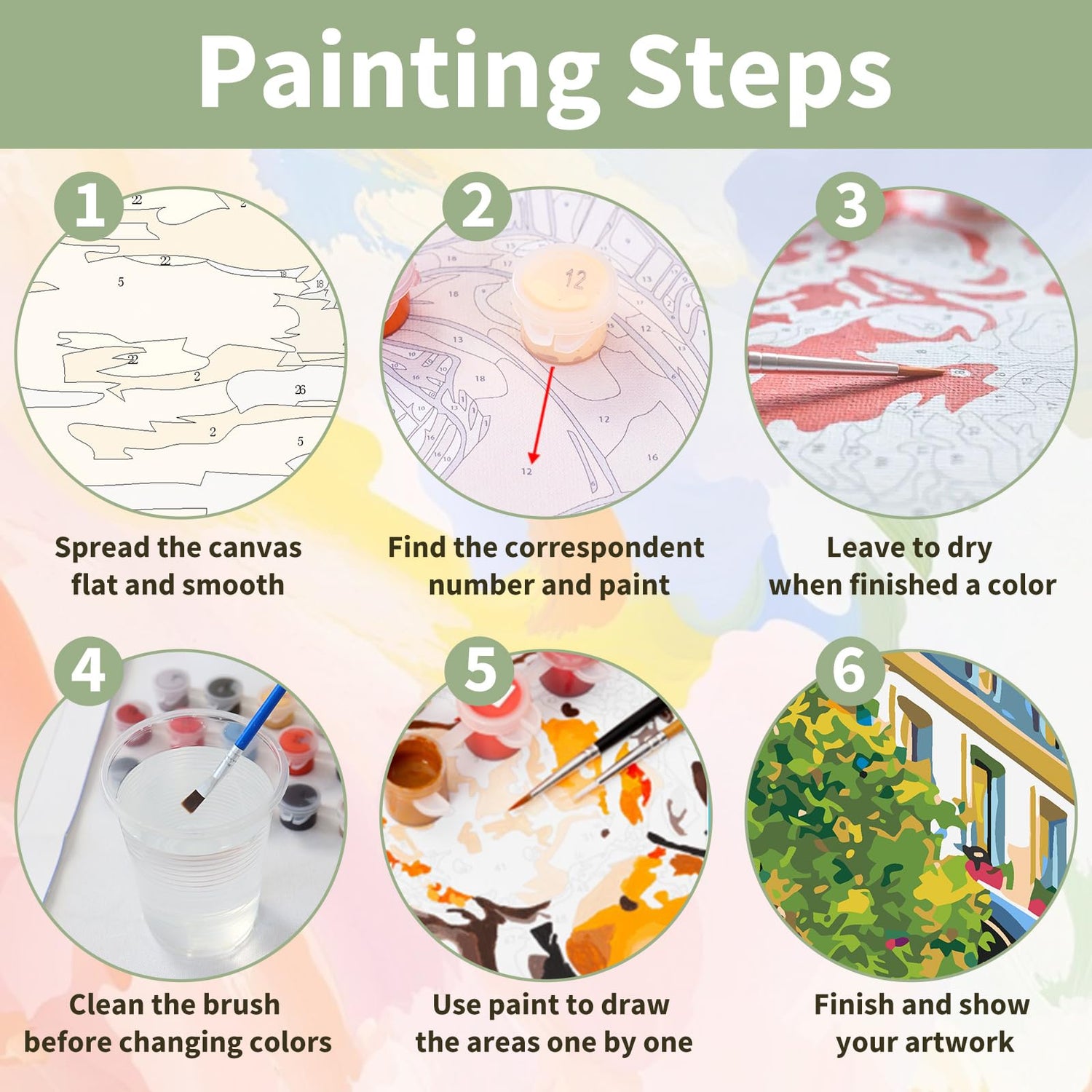 - 【Easy and fun Steps To Make】Our Spring Cafe paint by number kit offer a hassle-free painting experience.The canvas features sharp, easy-to-read numbers, allowing for a seamless painting experience. it doesn't need any knack of painting allowing you to feel the joy of creating and experience