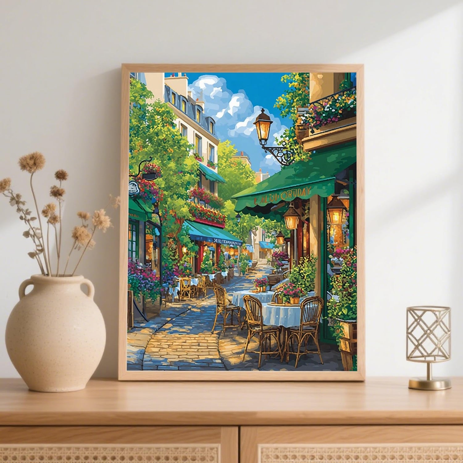 Ceiomez Paint by Numbers Kit for Adults, Street Cafe Paint by Number, Street Paint by Numbers for Adults Beginner for Gift Home Wall Decor 16x20 Inch