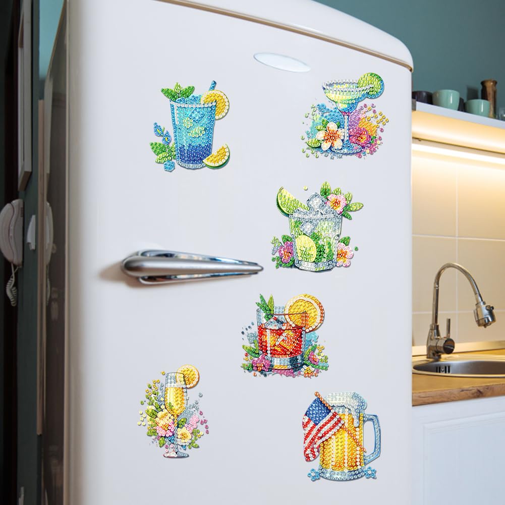 Ceitura 6Pcs Acrylic Wine Glasses 5D Diamond Art Painting Fridge Magnet for Adults Beginners