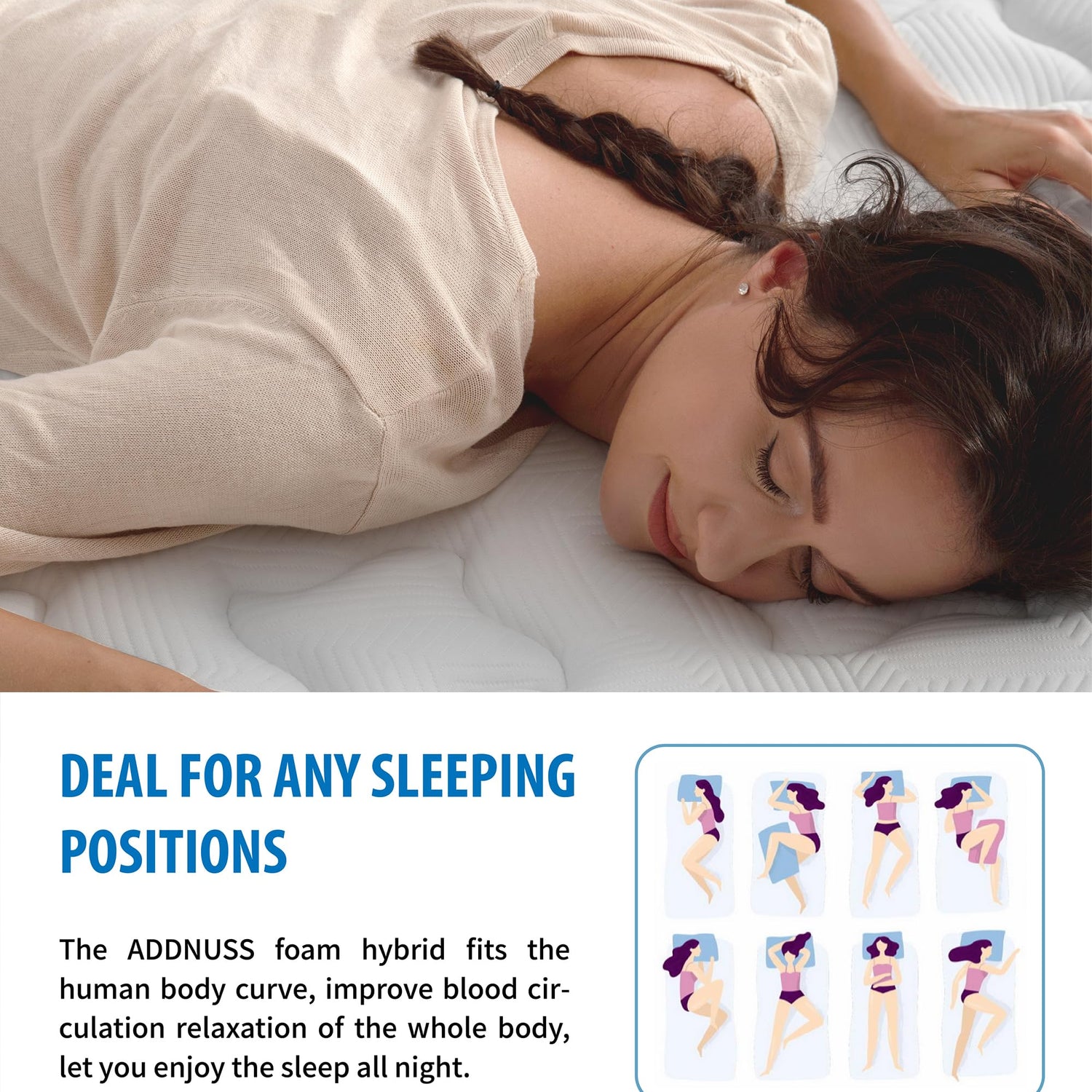 - Independent Movement: This hybrid full mattress in a box has built-in high-quality independent bagged springs and high-density foam, which can effectively absorb the noise and vibration generated by your partner's turning during sleep, so that you can sleep soundly and keep your refreshed the next day.