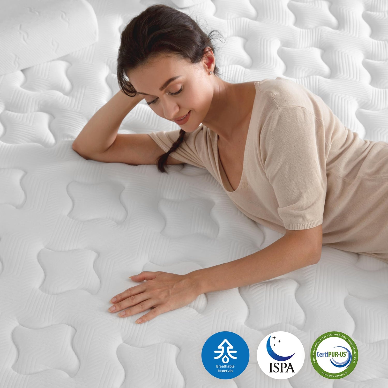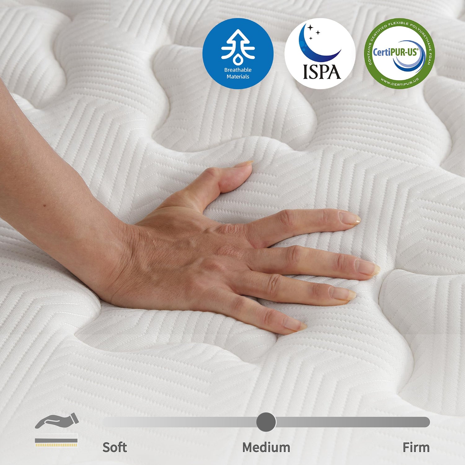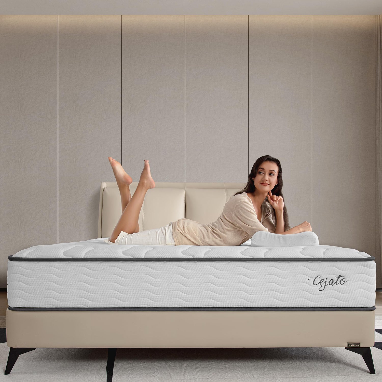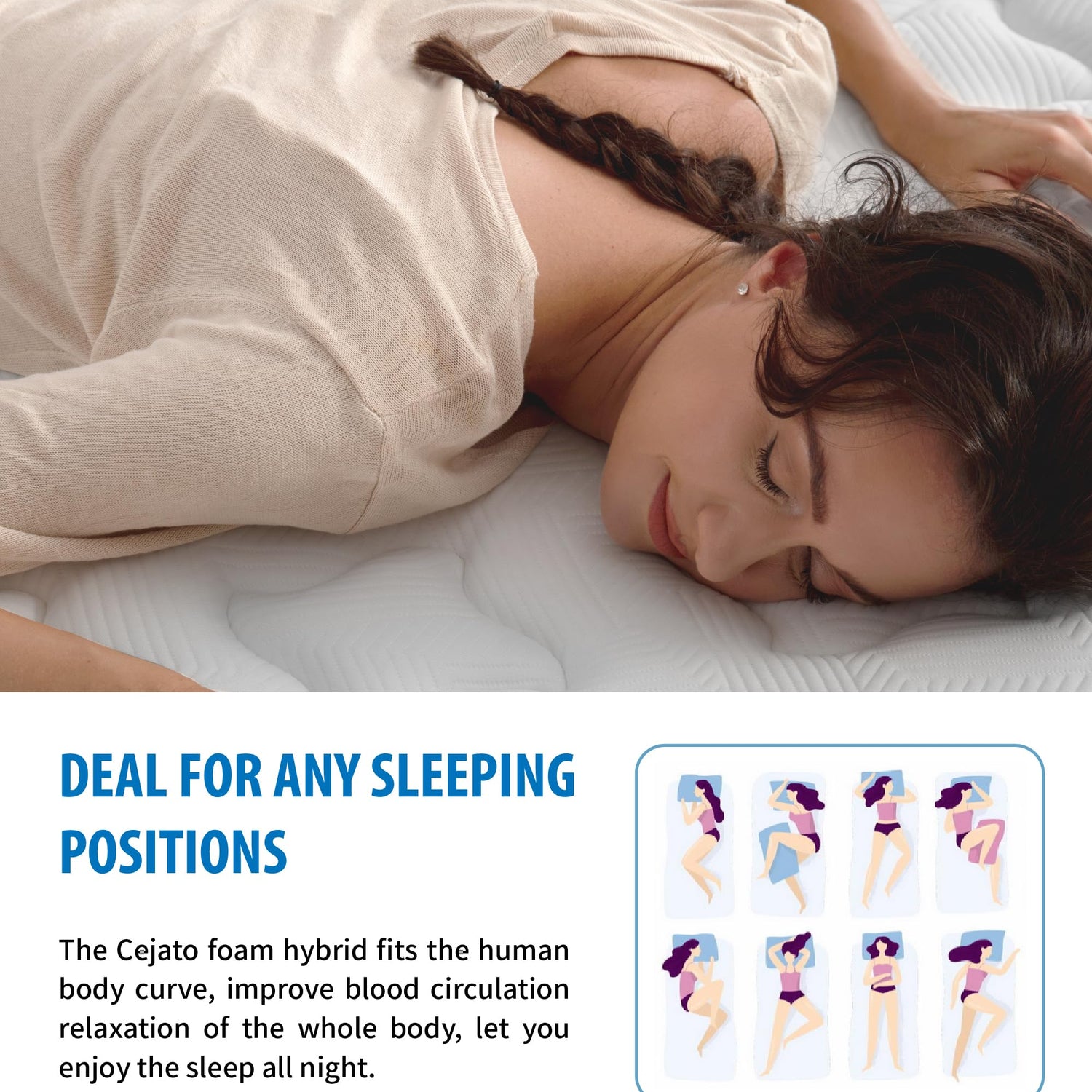 Cejato Queen Size Mattresses,10 Inch Memory Foam Hybrid Queen Mattresses in a Box White Mattress with Provide Sleep Support and Pressure Relief,Medium Firm,CertiPUR-US.