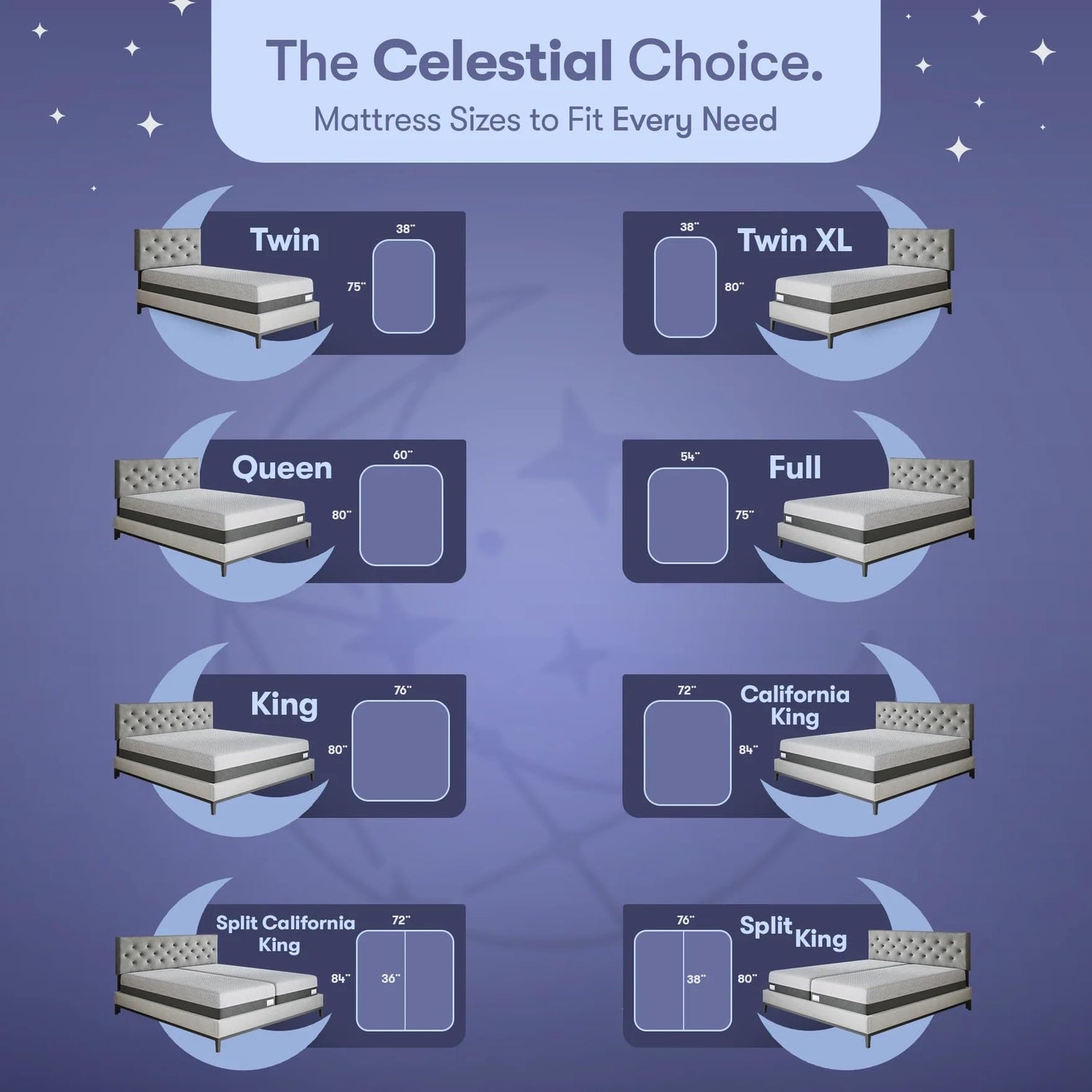 - Perfect Support for Any Position: Whether you're a side sleeper, back sleeper, stomach sleeper, or just toss and turn, Celestial Sleep has you covered. Our mattress is designed to offer optimal support, coolness, breathability, and comfort no matter how you sleep.