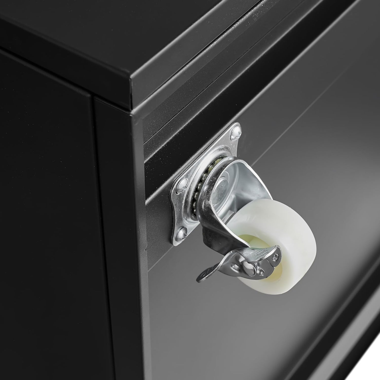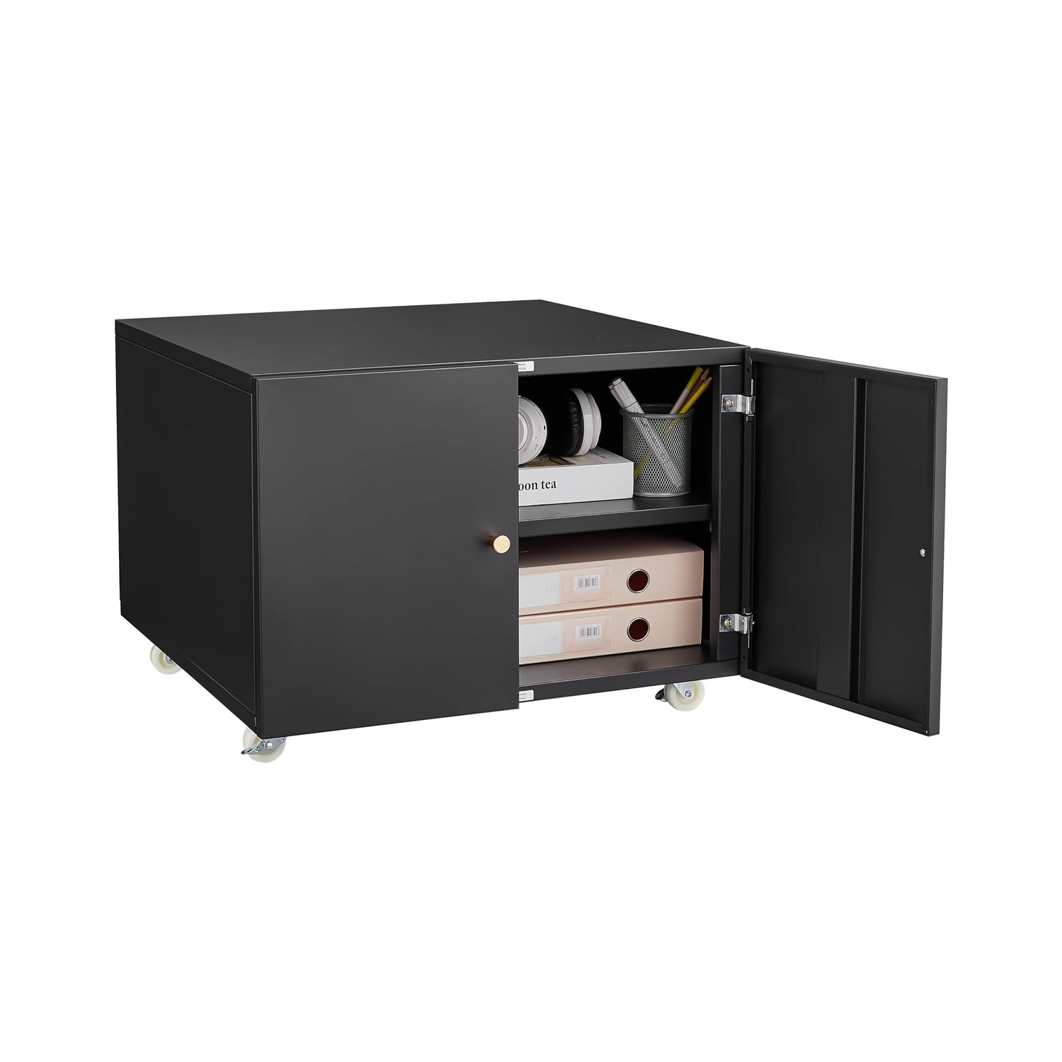 CEMKAR Printer Stand with Adjustable Storage Rack Mobile Metal Wheeled Work Cart Rolling File Cabinet with Door for Home Office (Black)
