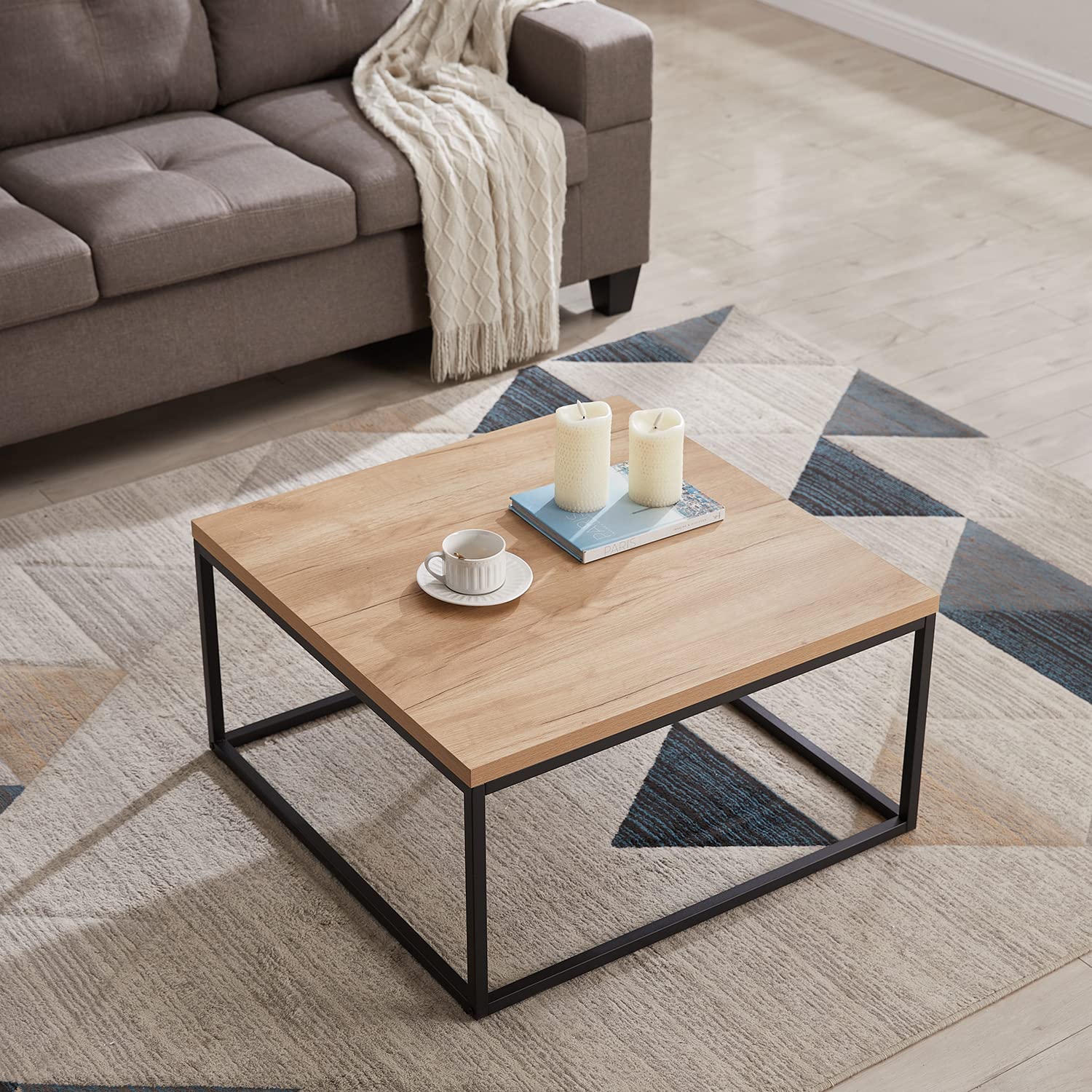 - HEAVY-DUTY METAL FRAME: Supported by a matte black powder-coated steel frame (20x20mm), this square cocktail table delivers rock-solid stability. The welded metal legs ensure the table won't wobble, supporting up to 200 lbs of books, plants, or feet.
