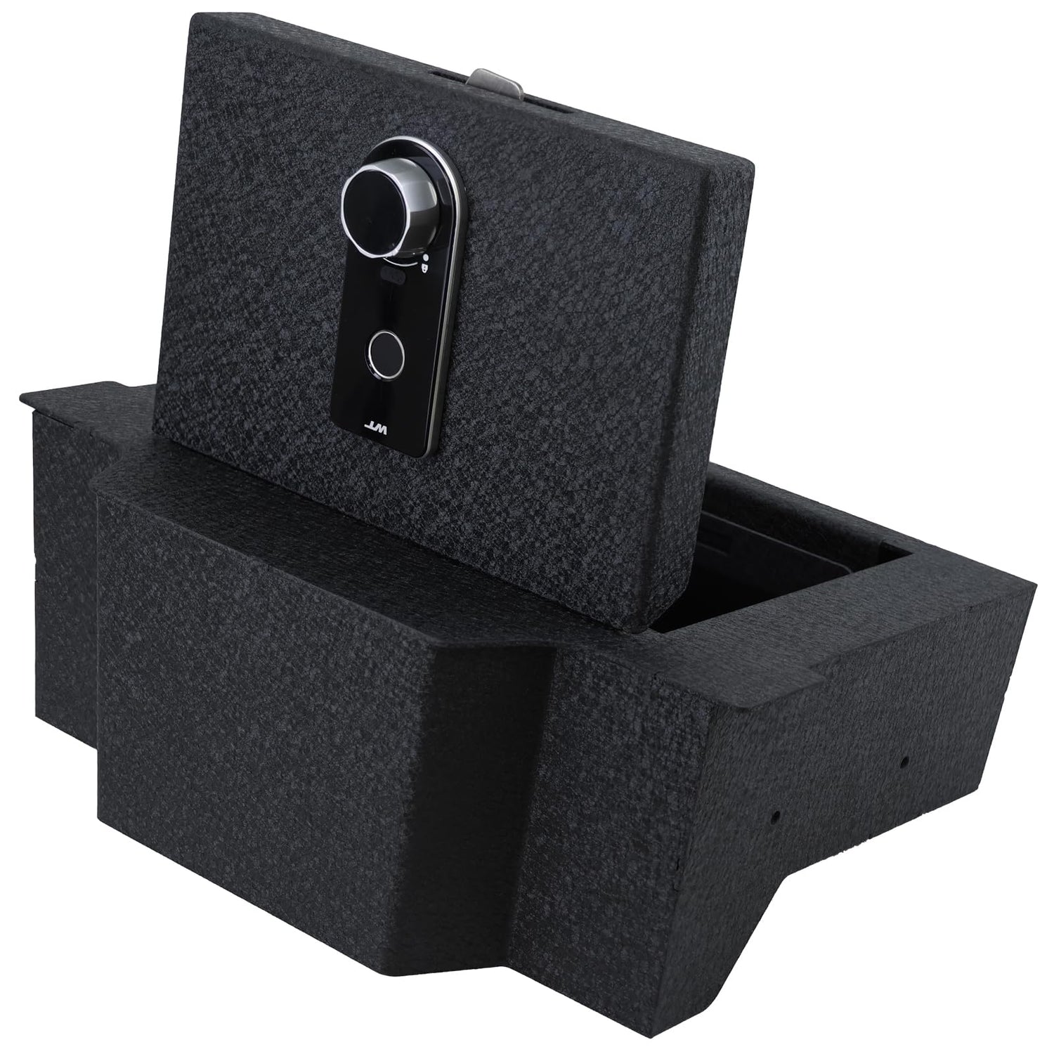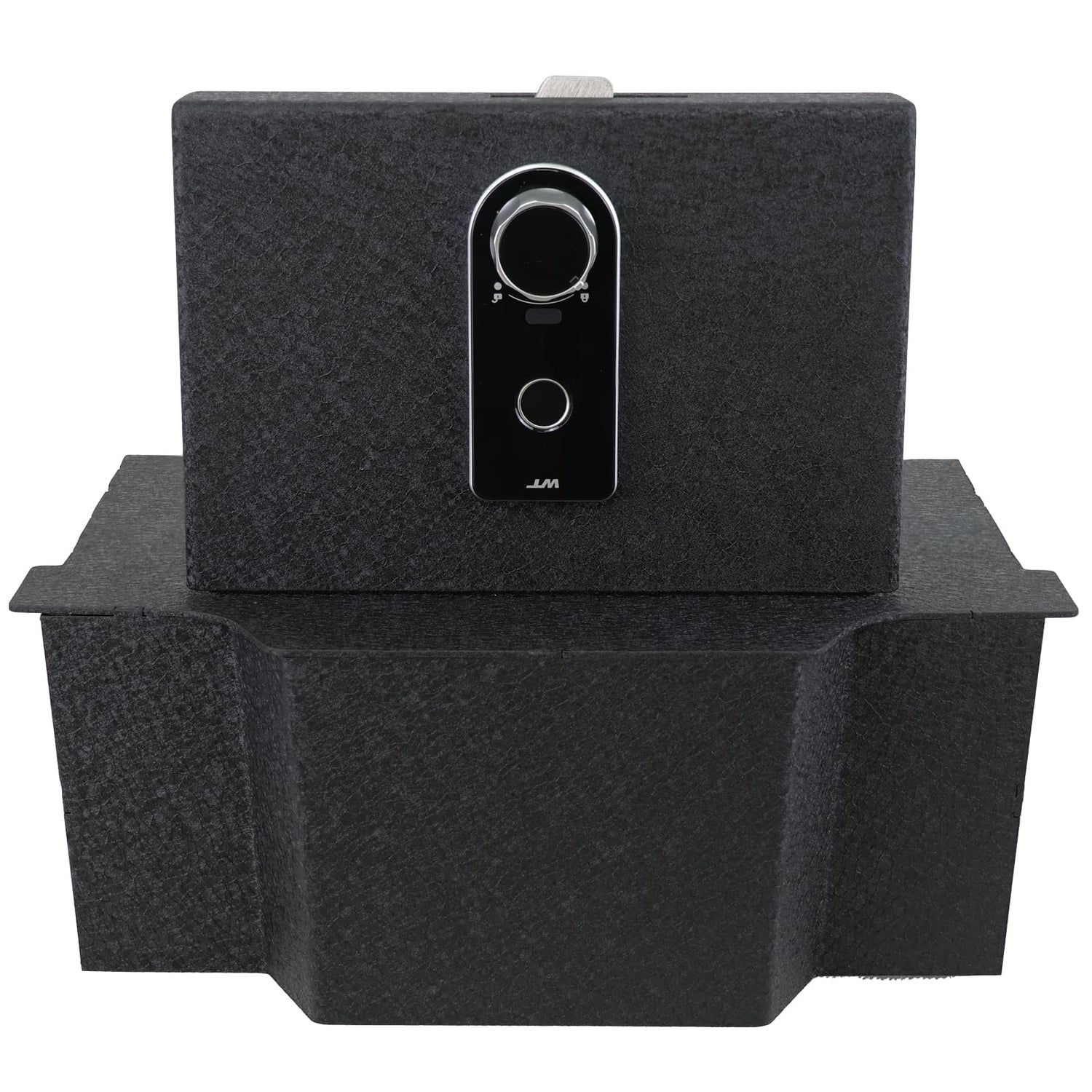 - [Keep Your Valuables Safe] TUOJUE center console safe storage box can keep your items safe in vehicle. It has an Excellent fingerprint lock combination and tamper-proof hinge, which is fixed in the car with firm bolts to prevent prying. You can safely store your wallet, gun and other valuables.