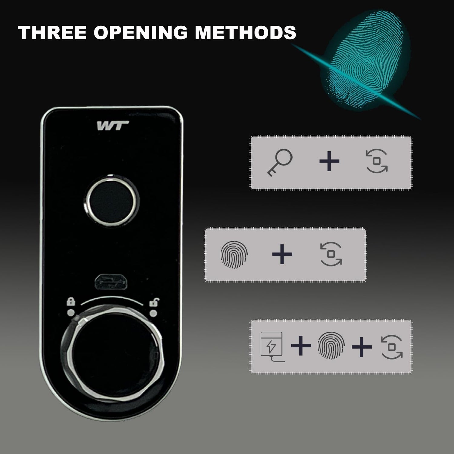 - [Keep Your Valuables Safe] The fingerprint lock features a highly secure lock that opens using a backup key or fingerprint. Hide key hole ensures an emergency opening.Please note that the lock requires Alkaline Batteries for proper operation.