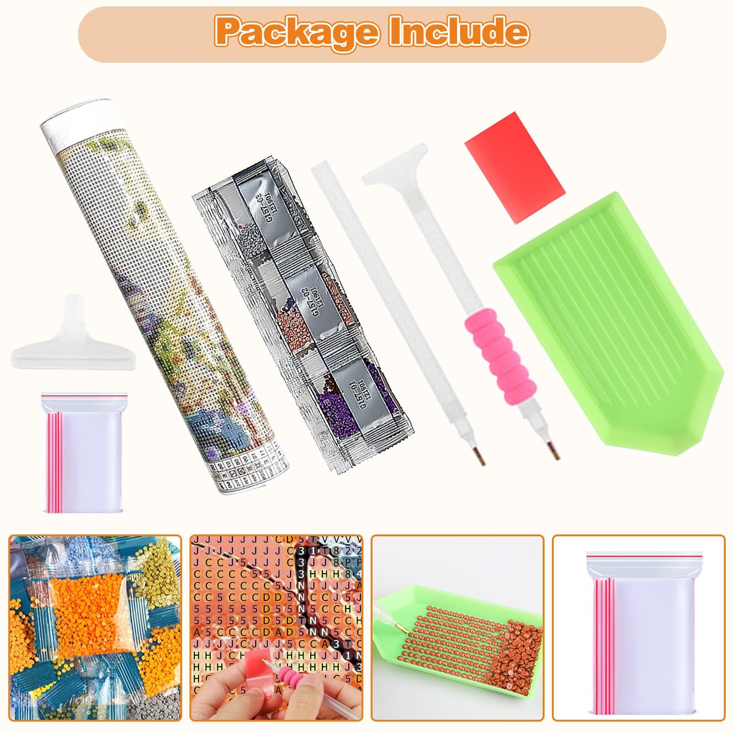 - 【What You Will Get】12*16 inch high definition canvas,2 diamond pens,1 glue clay,1 tray,1 pen tool,enough ziplock bags,1 set of beads and extra 30% gems for each color. The printed canvas is made of durable material which has uniform texture and vibrant color.
