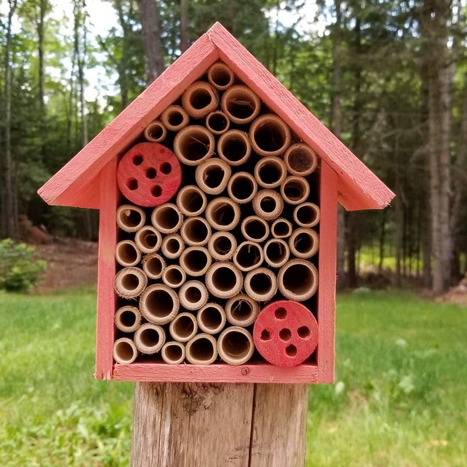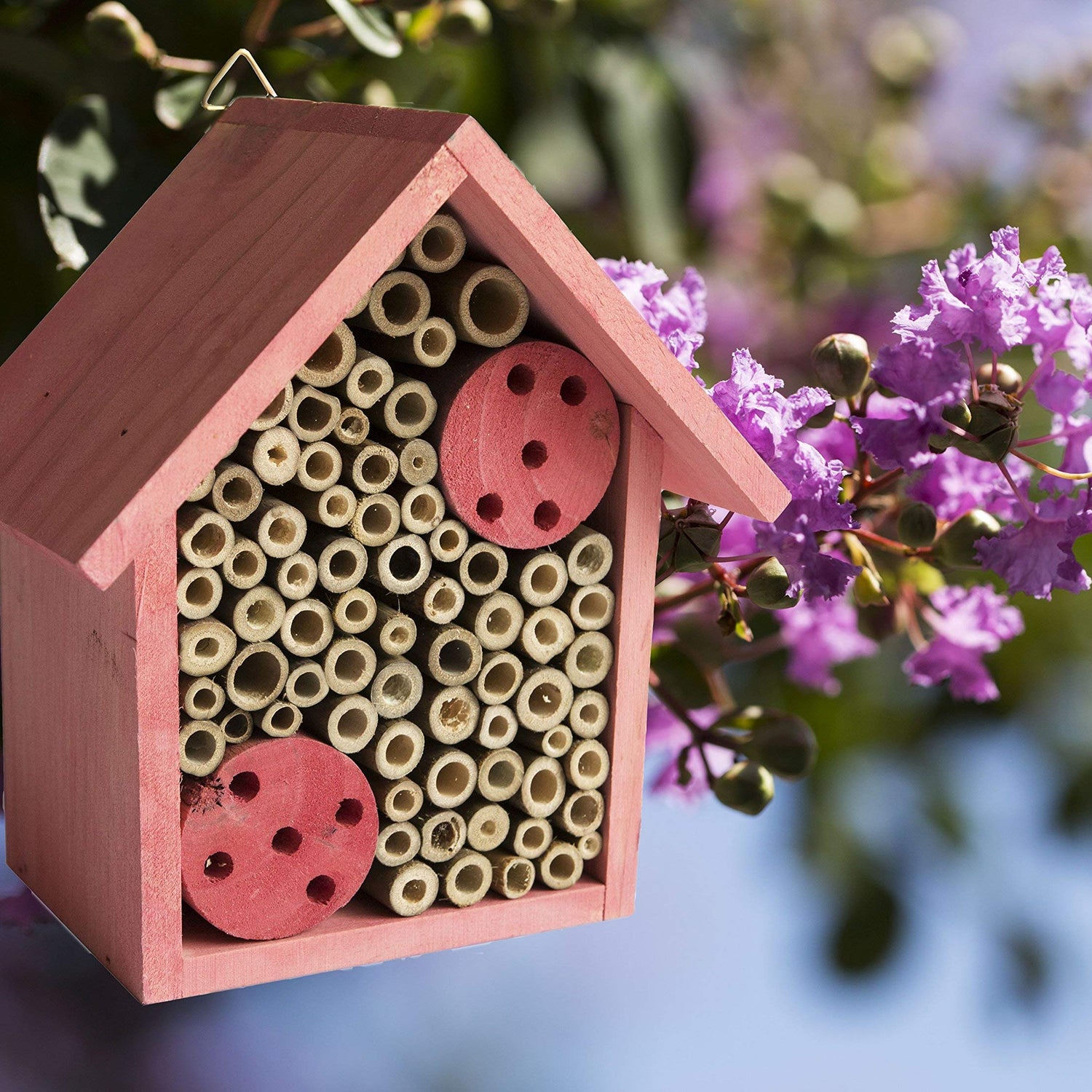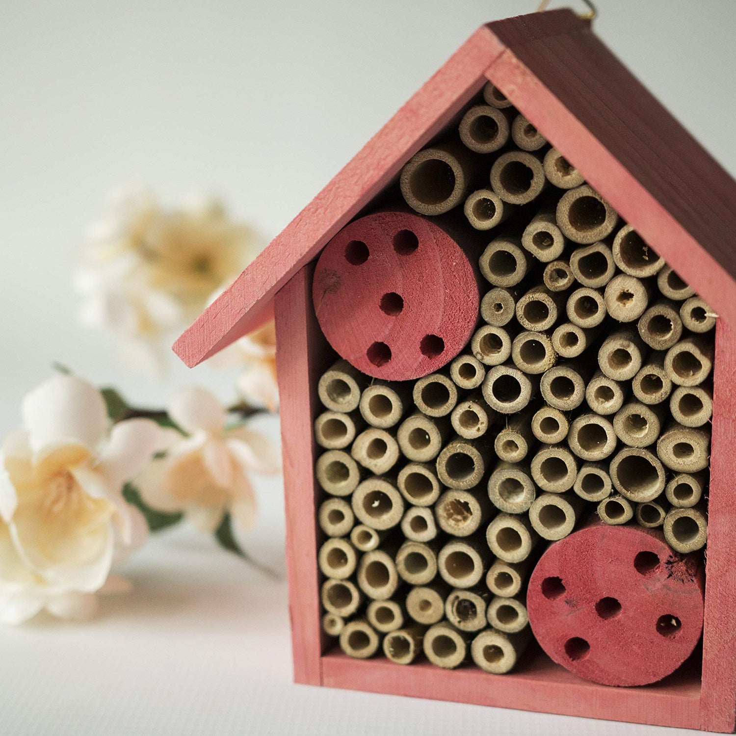 - π SAFE NATIVE BEE HABITAT: More than a garden decoration, this wild bee house helps increase the population of beneficial bees. Smooth tubes don't injure wings keeping bees safe, overlapping roof shelters nests from wind + water damage ; carpenter bees also like these bee boxes, so a few well placed bee houses could lure them away from drilling holes in your home. Set your mason bee hive about 4 ft off the ground, on a post, tree, fence, or wall, in a sheltered area near your garden.