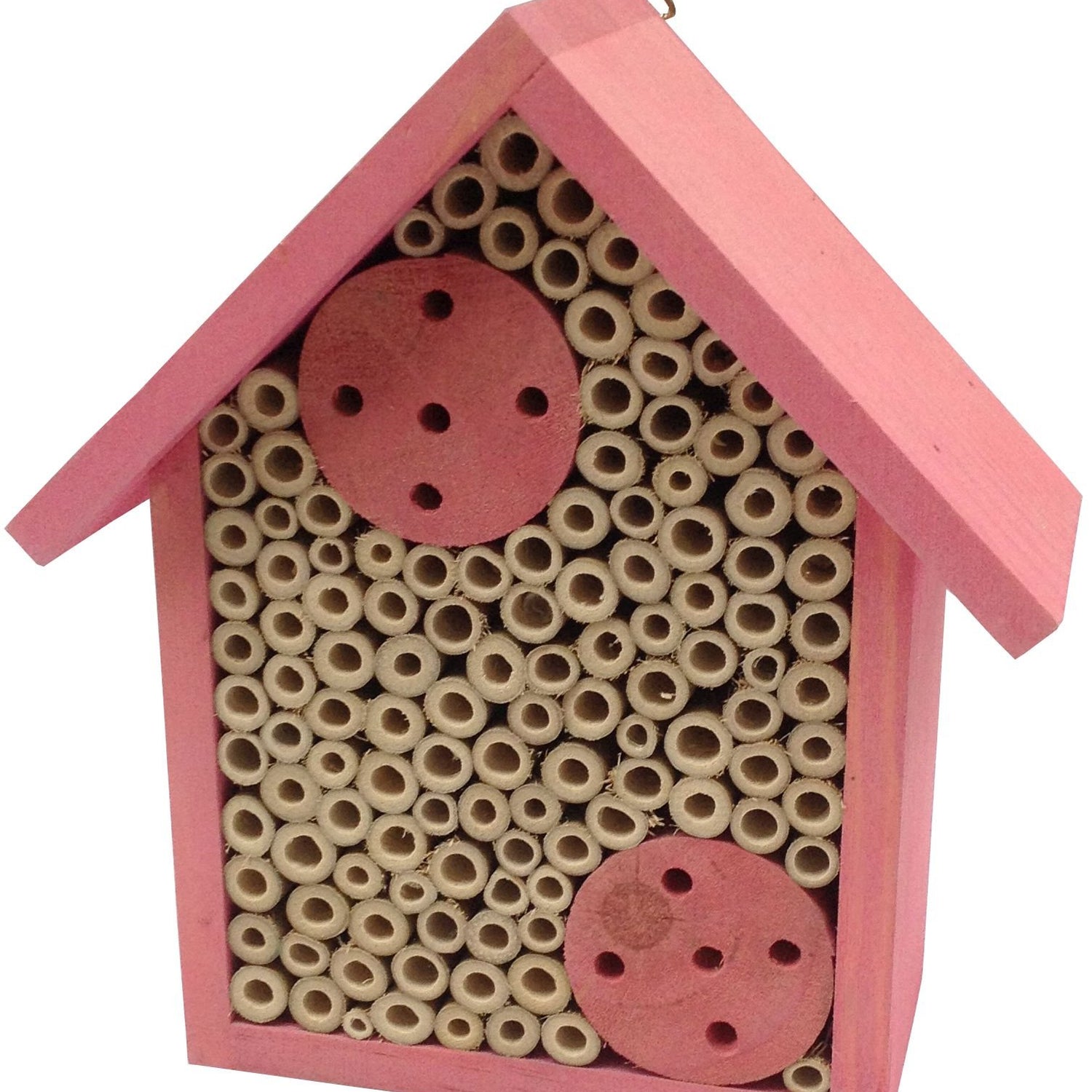 Cestari Mason Bee Housse for The Garden β Rose Pink Handmade Wooden Solitary Bee Hotel with Hanging Design for Pollinators β Eco-Friendly Nesting Shelter
