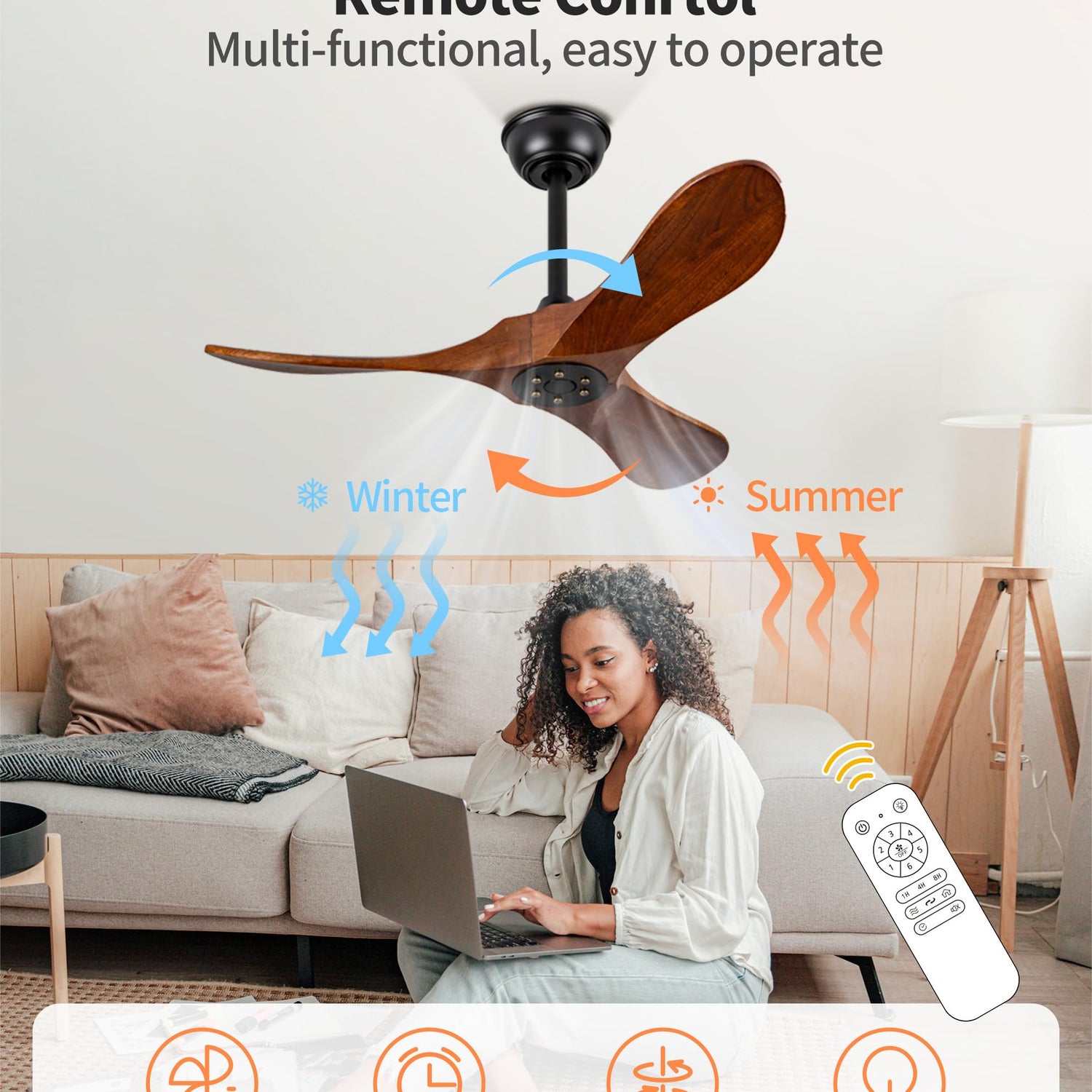 - 【Multi-function Ceiling Fan with Remote Control】Use the equipped controller to operate the modern ceiling fan no light. It offers 6 fan speeds, 1/4/8 hour timer settings.The small ceiling fan without light is very easy to operate!