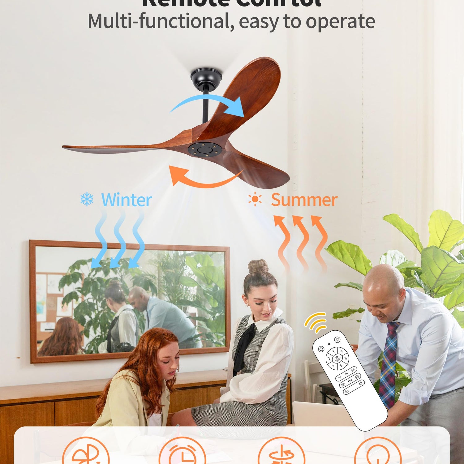- 【Multi-function Remote Control】All operations of the modern ceiling fan are controlled by a remote control. It offers 6 fan speeds, 1/4/8-hour timer settings.