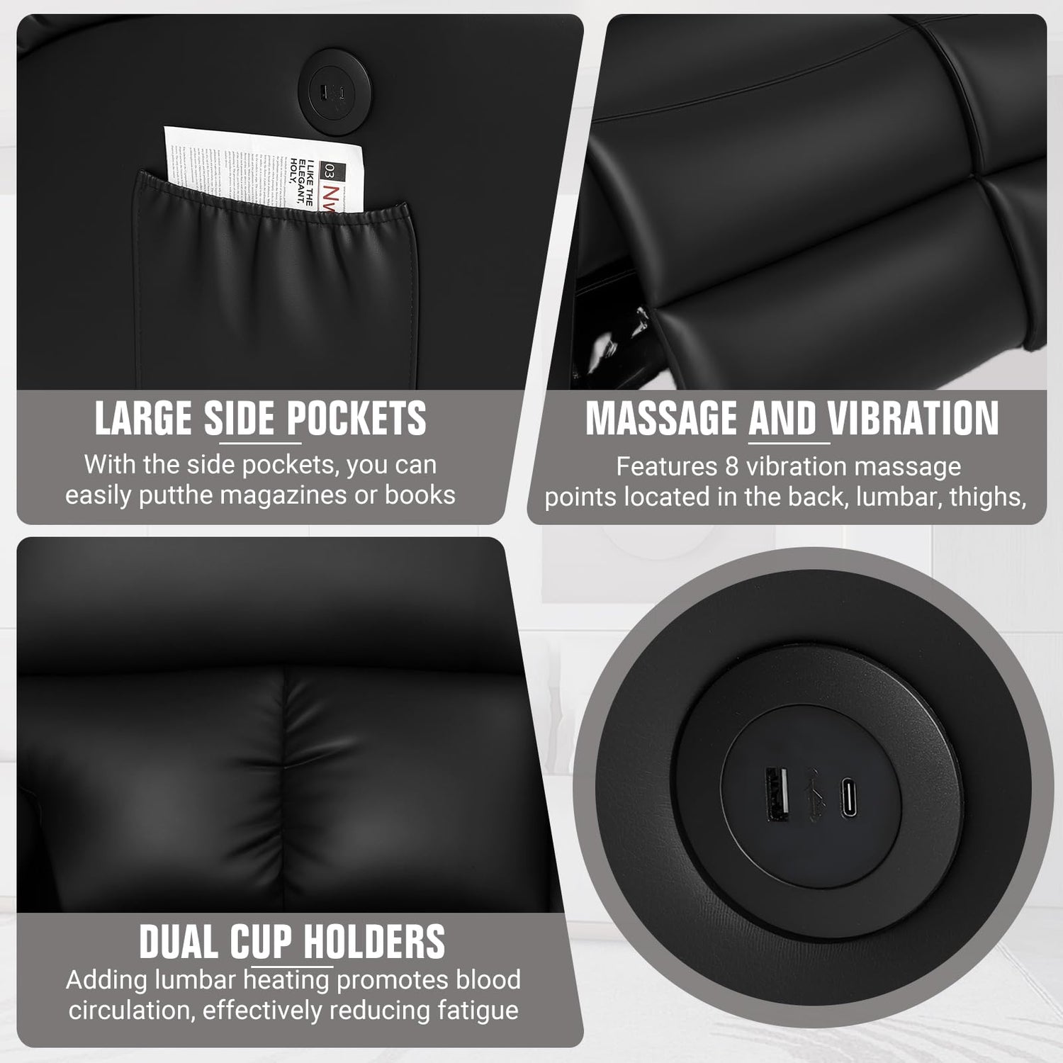 CHABATREE Home Theater Seating,RV Recliner Sofa with Massage and Heat,Manual RV Recliner Loveseat with USB/Cup Holders and Side Pocket for Living Room,2 Seater Black