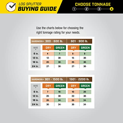 The Champion Power Equipment 90720 7-Ton Horizontal Gas Log Splitter is small on size but big on power. If you’re looking for a quick, dependable and portable solution for log splitting, this is the unit for you. Depend on the reliable recoil start to start up the powerful Champion 79cc single-cylinder OHV engine, which features a cast-iron sleeve, a 0.3-gallon fuel tank, 0.4-quart oil capacity (recommended 10W-30) and a low-oil shutoff for safety. Never struggle to lift a large, heavy log onto your log splitter again. The low-profile design makes it much easier to load a large log onto the splitting beam, and the integrated log cradle keeps the log safely in position. This small but mighty machine handles logs up to 19 inches long, weighing up to 50 pounds. Seven tons of splitting capacity deliver the power you need for the job at hand. The hydraulic oil system has a 1.5-gallon oil capacity and operates at 3 gpm to power through tough logs. Champion designed this log splitter with a skewed wedge to increase splitting efficiency, plus it has a 20-second cycle time and dependable auto-return valve, which is capable of 180 cycles per hour. The 2-stage gear pump reliably adjusts flow and pressure by delivering high flow/low pressure when there is no resistance and low flow/high pressure when cutting through a log to increase productivity. This log splitter will fit easily in any truck bed, plus it’s easy to move from one job to the next with the comfortable handle and 10-inch never-flat tires. Assembly and setup are hassle free with Champion’s clear directions and thoughtful packaging. This log splitter is EPA certified and CARB compliant. Buy with confidence - our reliable support and network of service centers will back your purchase up with a 2-year limited warranty and FREE lifetime technical support.