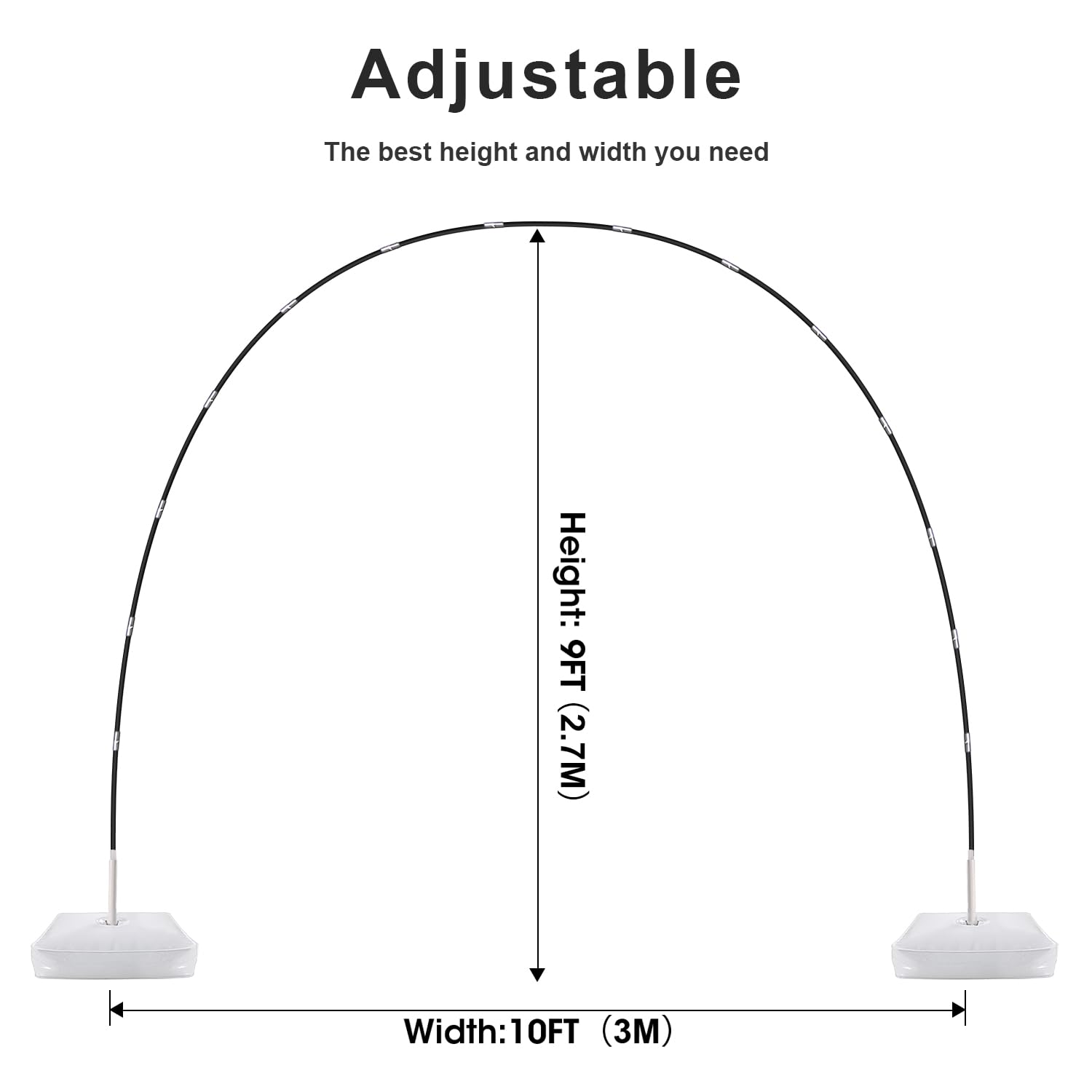 - 【ADJUSTABLE SIZE&EASY ASSEMBLY】: The height and width of the arch can be adjusted at will by adjusting the distance between the bases. Install this balloon arch will no more than 2 minutes.