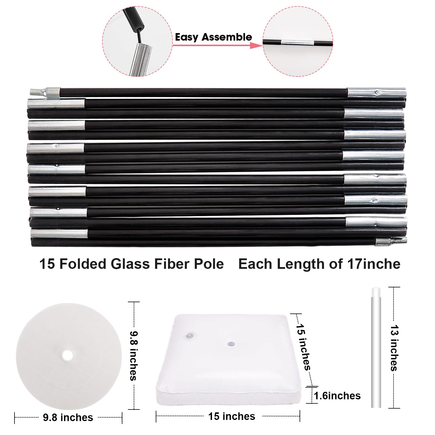 - 【HIGH QUALITY & STURDY】: Well-designed mesh base and water bag, stable PVC pipe.It will not shake sharply due to wind or object collision.The balloon pole is a folded integral accessory, with the single length is 17 inches high strength black glass fiber pole, bending is not easy to break,You can reuse it anywhere you want.