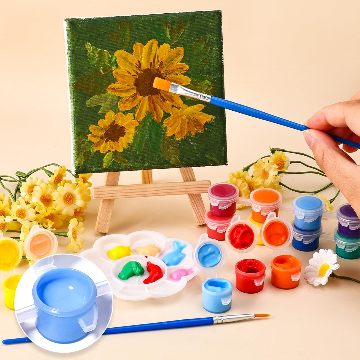 Details: CHANGTIKEJI 322 Pcs Washable Acrylic Paint for Kids Arts and Crafts, 23 Gouache Watercolor Paint Sets of 12 Colors for Party Classroom Painting Supplies, 20 Flat and 20 Pointed Brushes