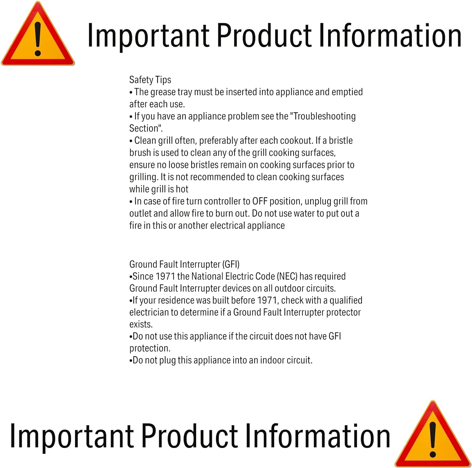 - GREASE TRAY: A removable grease tray catches oil drippings and slides out for easy cleaning. You can insert an aluminum liner to catch the drippings and keep the grease pan clean. When you’re all done, simply throw the liner away.