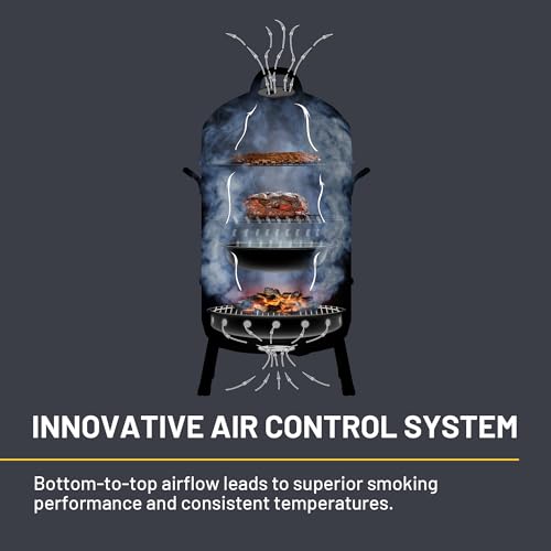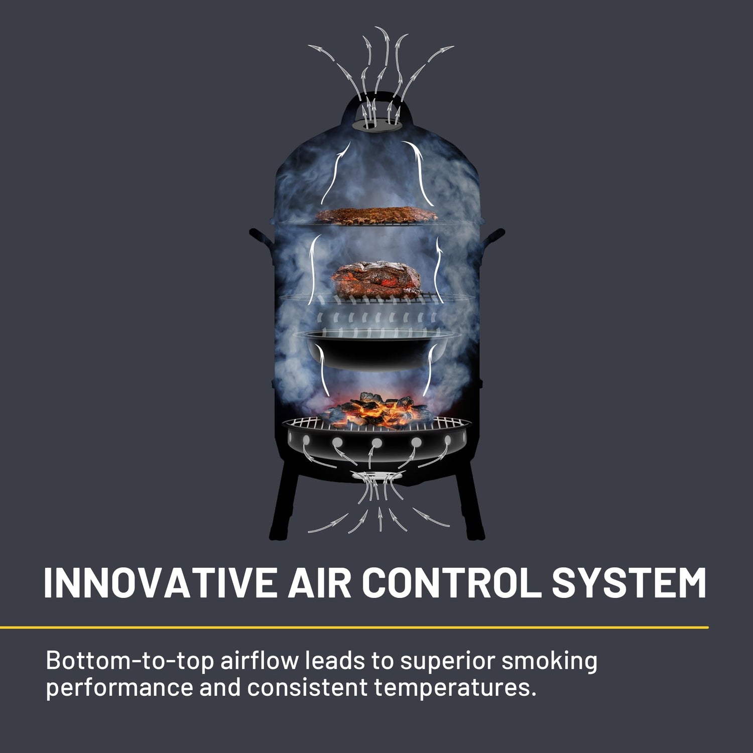 Details: Have it all with the Char-Broil® 16-inch Bullet Smoker—a durable, high-quality product and superior smoking performance at an amazing value. This bullet smoker features an innovative airflow control system that simplifies setting and maintaining cook temperatures. The durable porcelain coated steel body and cooking components stand up to rust while still being easy to clean. The removable ash pan system neatly collects ash from hours of cooking, making clean-up simple. Packed with features, this smoker provides exceptional performance without breaking the bank.