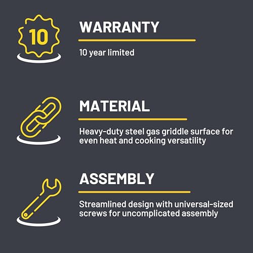 - GRIDDLE: Heavy-duty, steel griddle surface delivers even heat and optimum cooking performance. Griddle top has a rear slot to deposit excess grease into the grease tray and generous sidewalls to prevent food from falling over the edges.