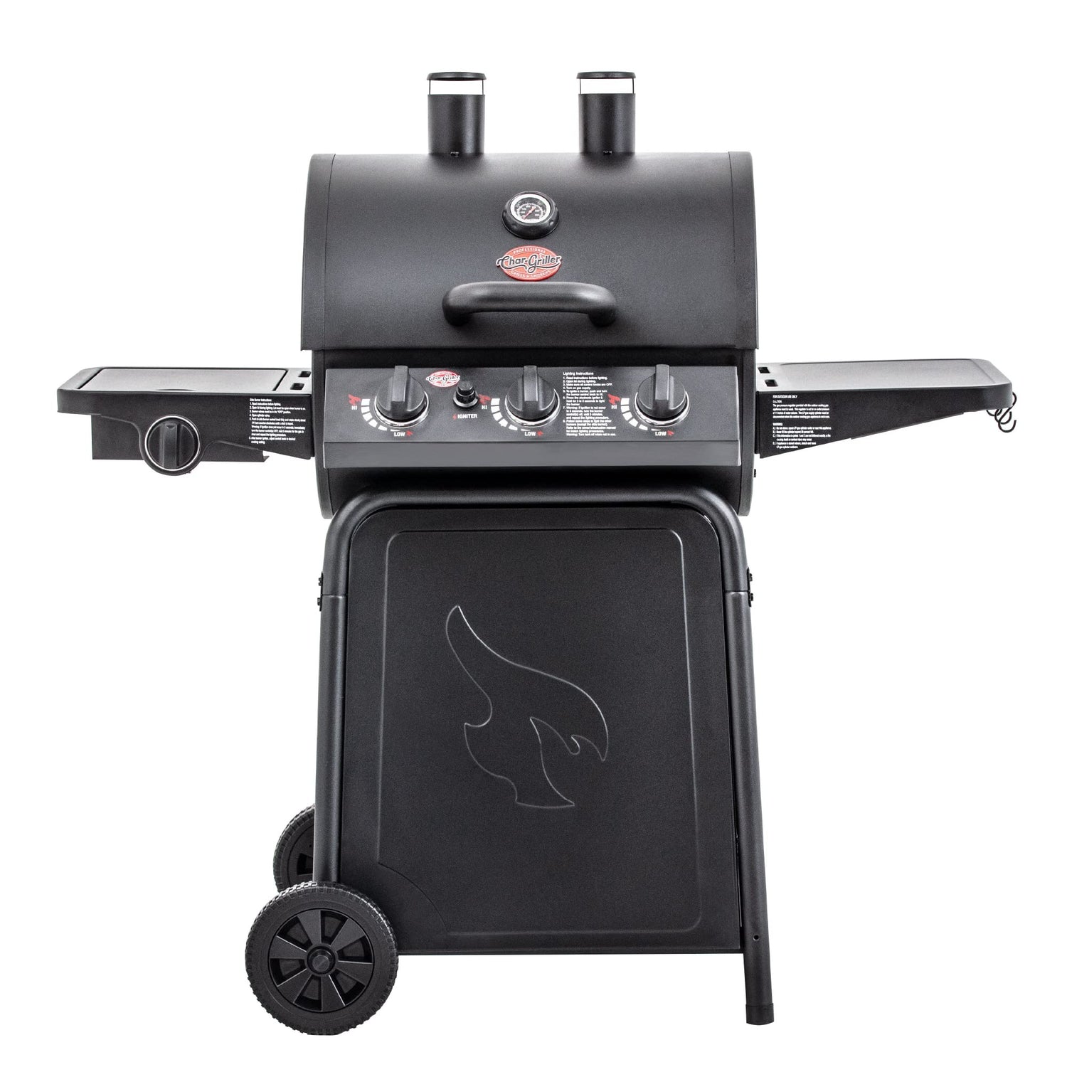 Char-Griller® Grillin' Pro 3-Burner Propane Gas Grill in Black with 40,800 BTU, Cast Iron Grates and Warming Racks, 630 Cooking Square Inches, Model E3001