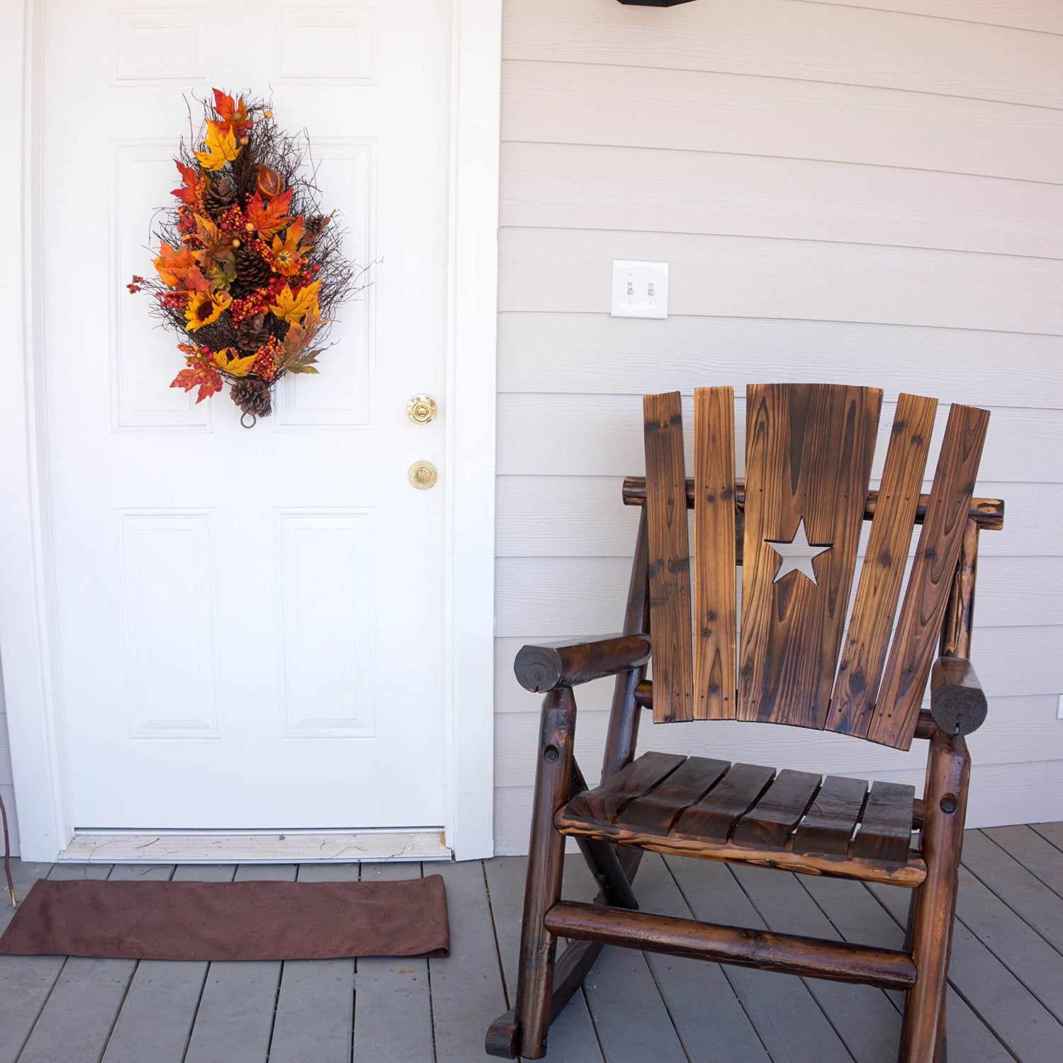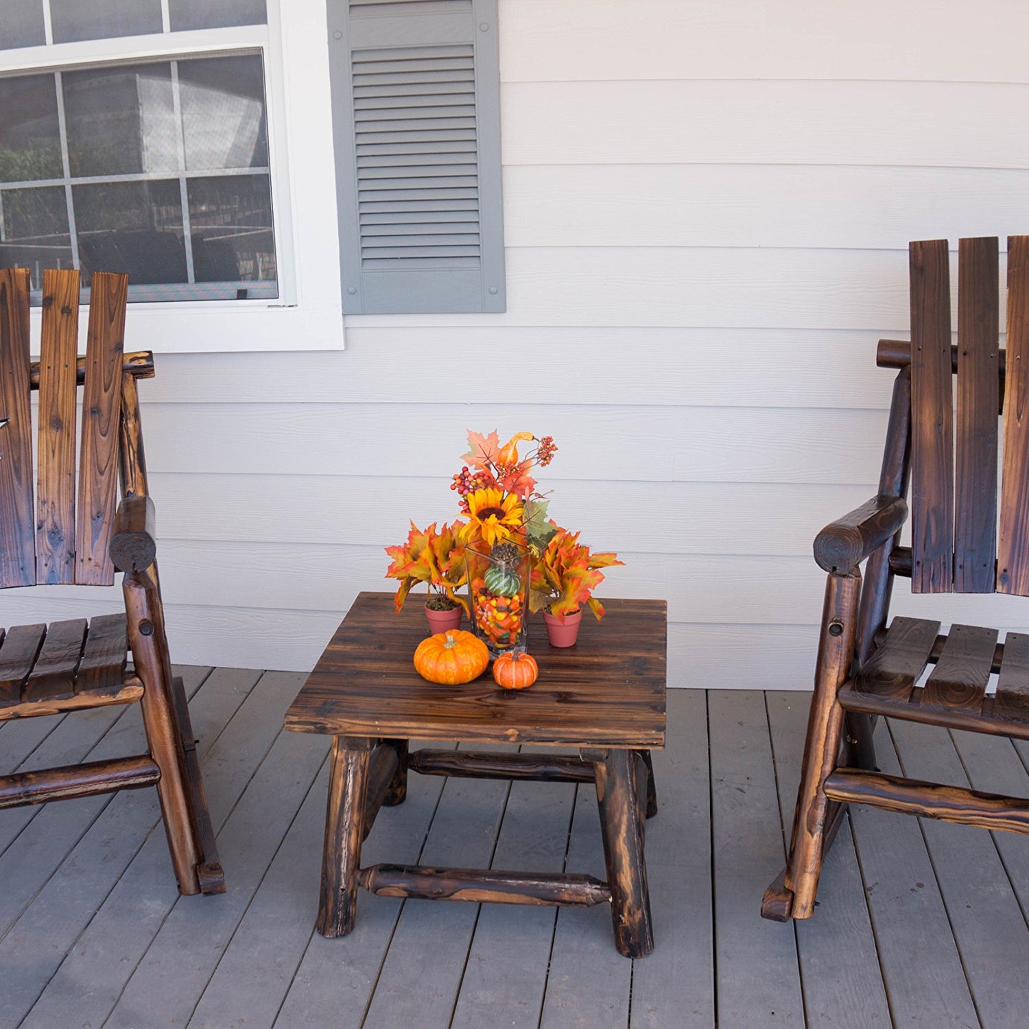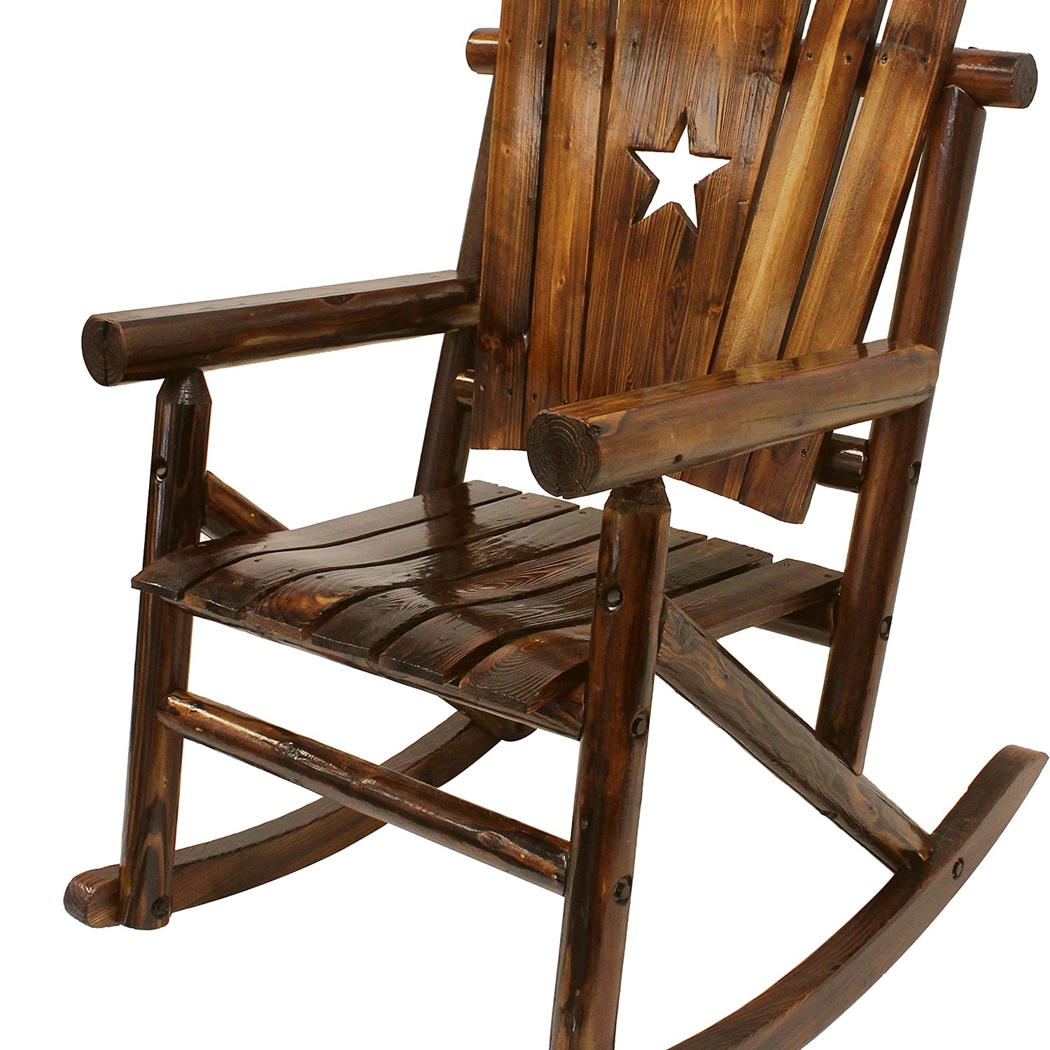 Details: No true country home is complete without a rocker. Whether you have a porch, a patio, or even a stoop, our rocker is just the piece to complete your authentic country living. Built tall and wide, this rocker is fit for a king! A star cut-out in the center of the back panel adds some country flair while curved seat slats and rounded armrests for maximum comfort. Try pairing this with our Char-Log End Table! (Sold separately). The Char-Log Series from Leigh Country features a naturally charred finish. Each log is individually cut, milled, charred, and then polished. All the logs are pre-checked to prevent further cracking from the natural expansion and contraction that occurs with weather changes. They are then sealed with a clear coat of varnish for a glossy finish. To extend the life of your product, and protect the charred finish, please use in a covered space.