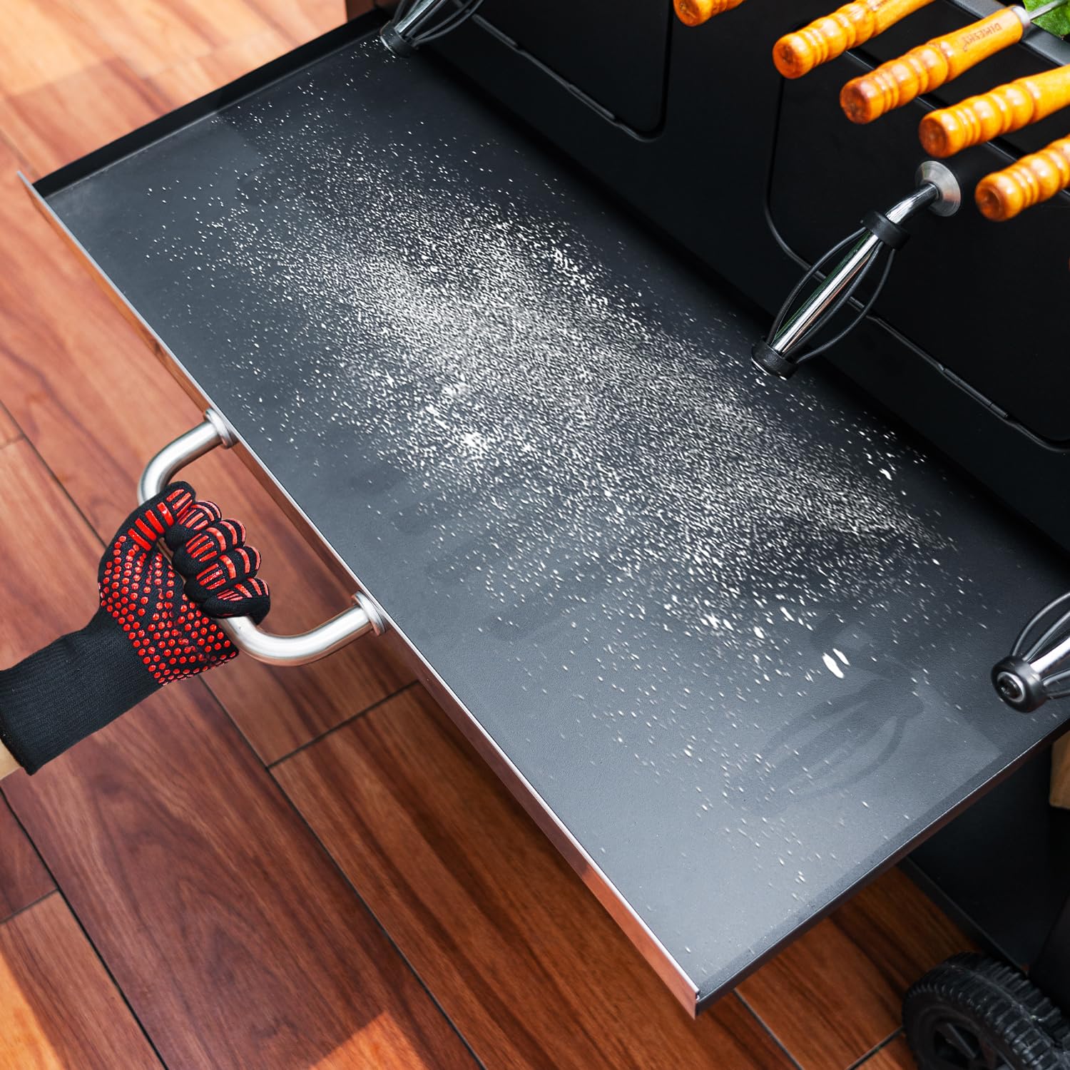 - 【Easy to Move】DNKMOR Large charcoal grill with 4 wheels. 2 pcs high quality plastic wheels and 2 pcs universal wheels. Which means you no need to lift the big guys first. Just move your barbecue with ease to where you need it. Safe more efforts
