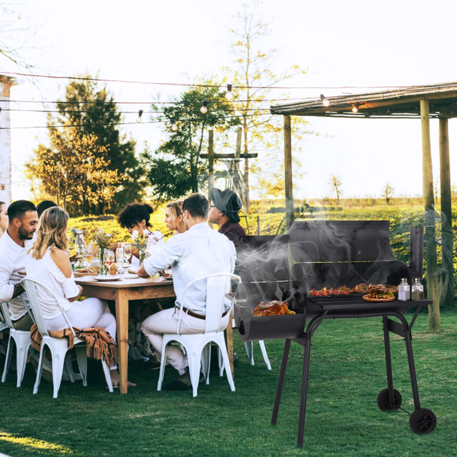 - 【Built to Last】 The charcoal smoker grill is made of solid steel.Power-coated surface which is heat and scratch resistant. Ensuring the barbecure grill won't rust and be easy to clean after long time use.