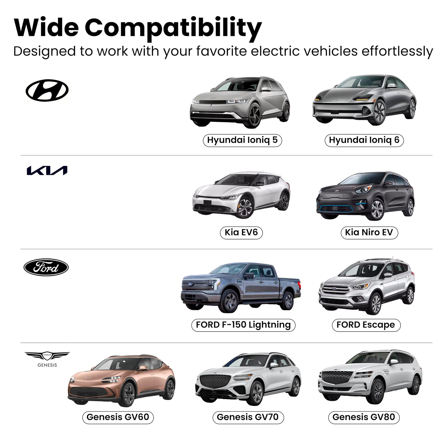 • Plug-and-Play Operation: Simple connection to your EV’s J1772 outlet, offering a quick and straightforward power source when you need it most.