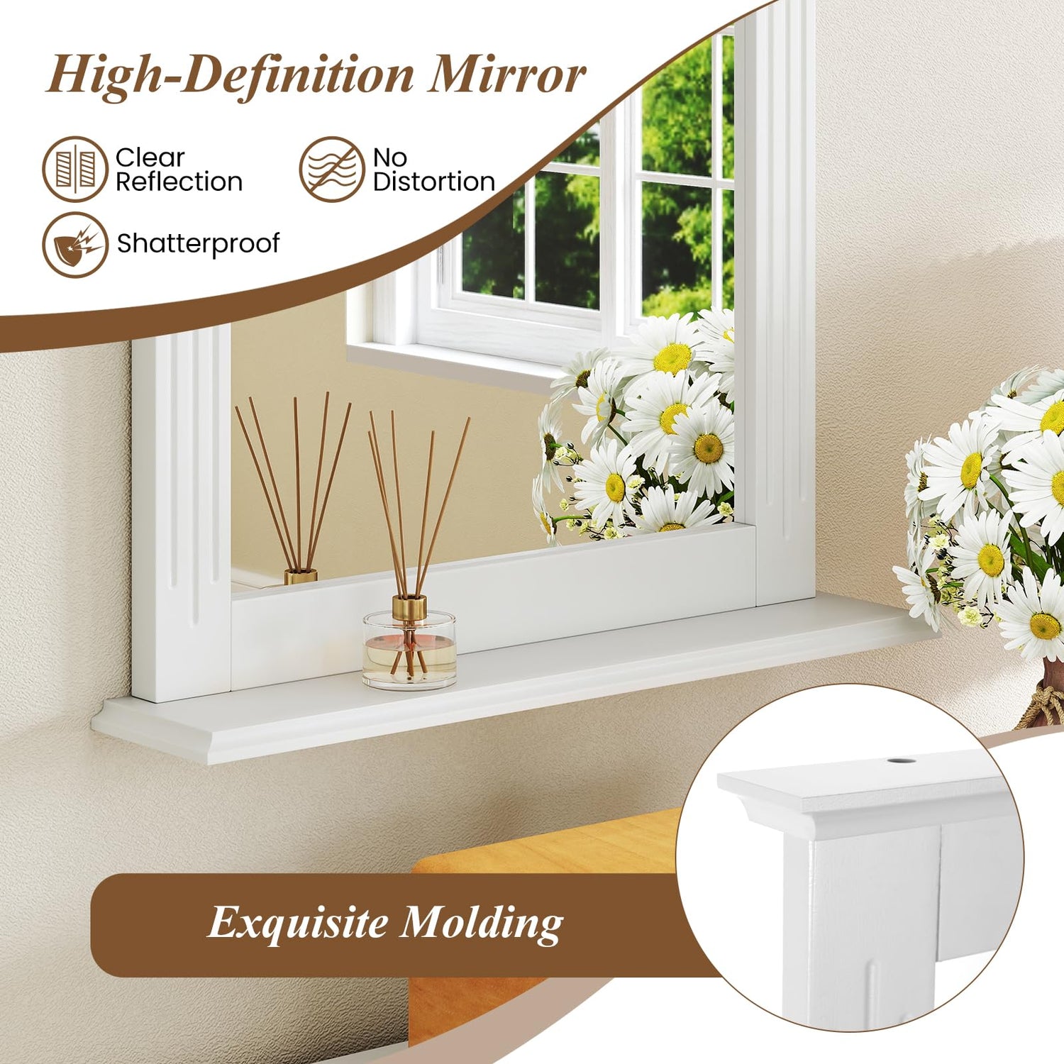 - [Built-In Storage Shelf]: Designed for both style and practicality, the integrated shelf of this bathroom mirrors for over sink offers extra storage space for everyday essentials. Perfect for holding toiletries in the bathroom, keys in the entryway, or small decorative items in any room.