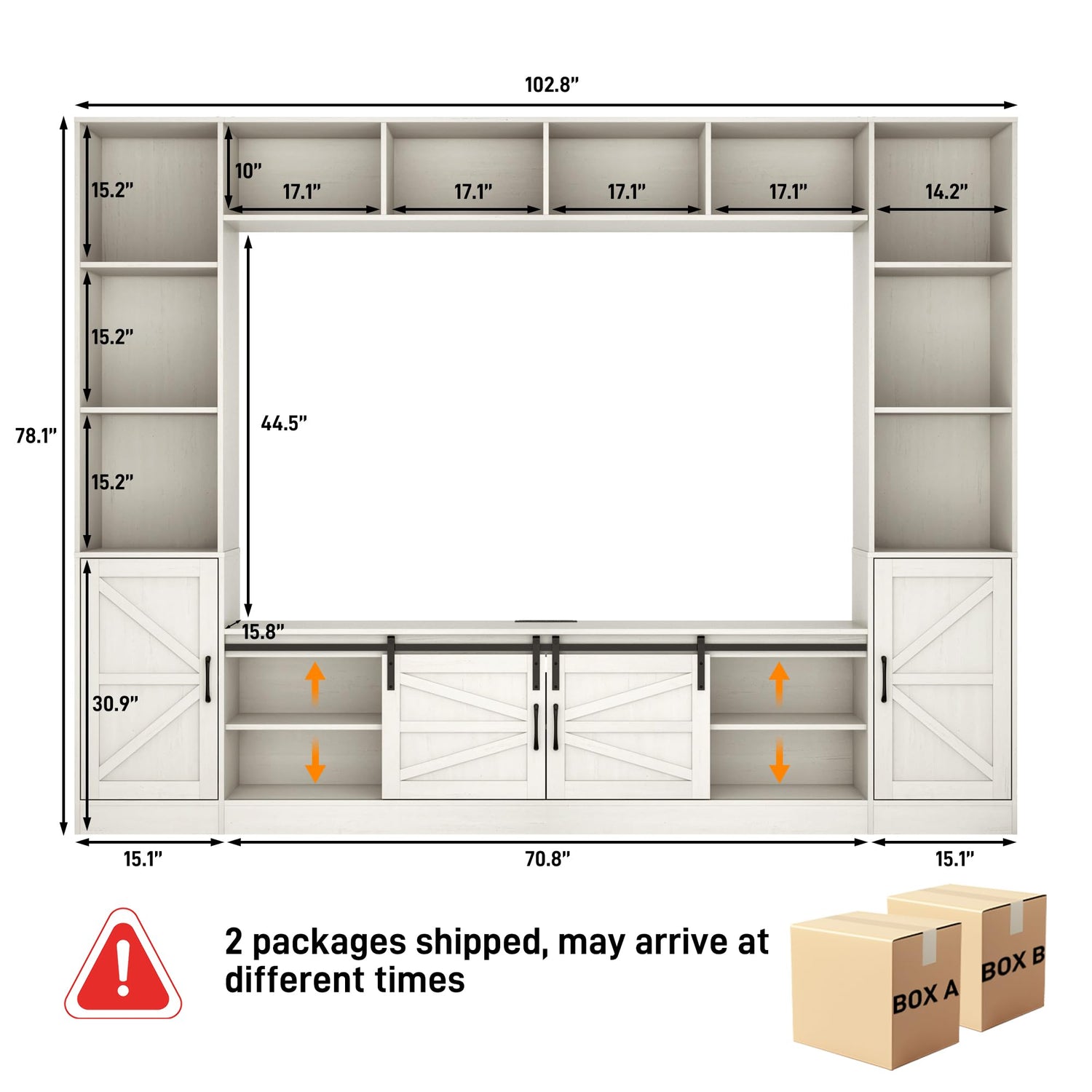 chartustriable 103" Wall Unit TV Stand with Storage for TVs up to 80" Large Farmhouse Wall Unit Entertainment Center w/Sliding Barn Door Cabinets and Power Outlet for Living Room, White