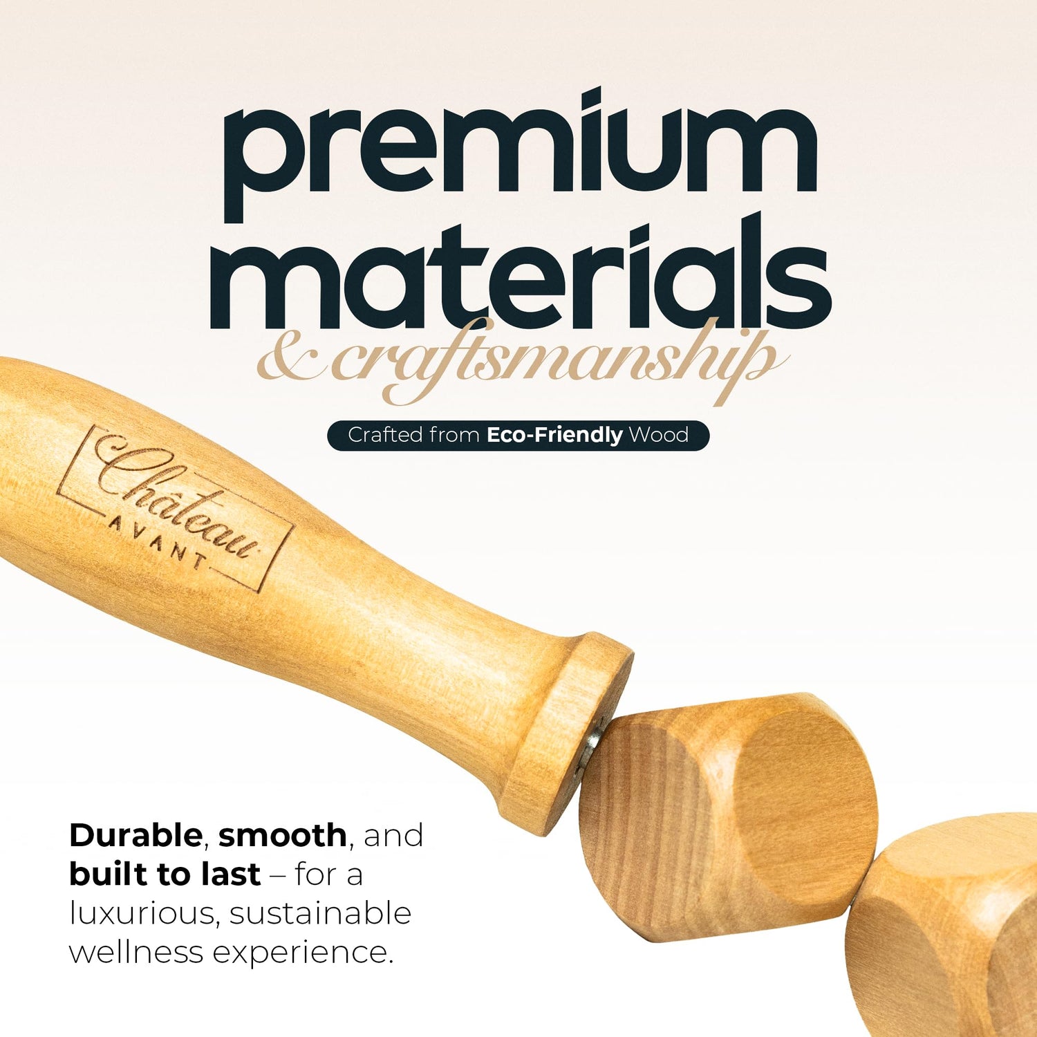 Château Avant Luxury Wooden Massage Tool Set, 5-Piece Lymphatic Drainage & Sculpting Kit – Cupper, Roller, Contouring Board, Scraper & Rope Roller