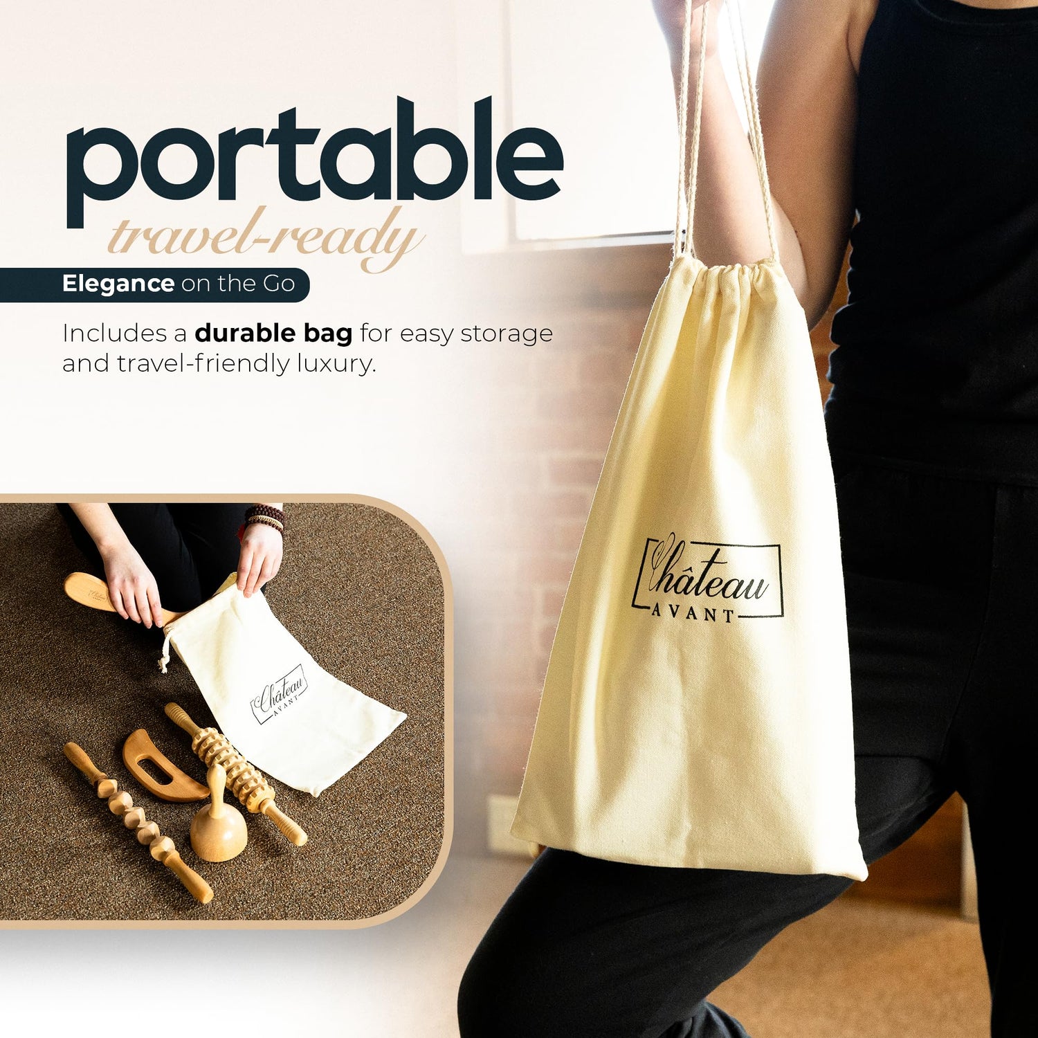 Details: Elevate your massage experience with the Château Avant Luxury Wooden Massage Tool Set. This 5-piece maderotherapy kit includes a Swedish cupper, roller massager, contouring board, S-shape scraper, and rope roller, crafted from high-quality wood. Designed for cellulite reduction, lymphatic drainage, and overall relaxation, these tools offer a luxurious spa-like treatment in the comfort of your home. The ergonomic shapes and smooth surfaces ensure a soothing massage, while the compact size and silk bag make it easy to store and transport. Indulge in a rejuvenating massage routine with this premium wooden massage set.