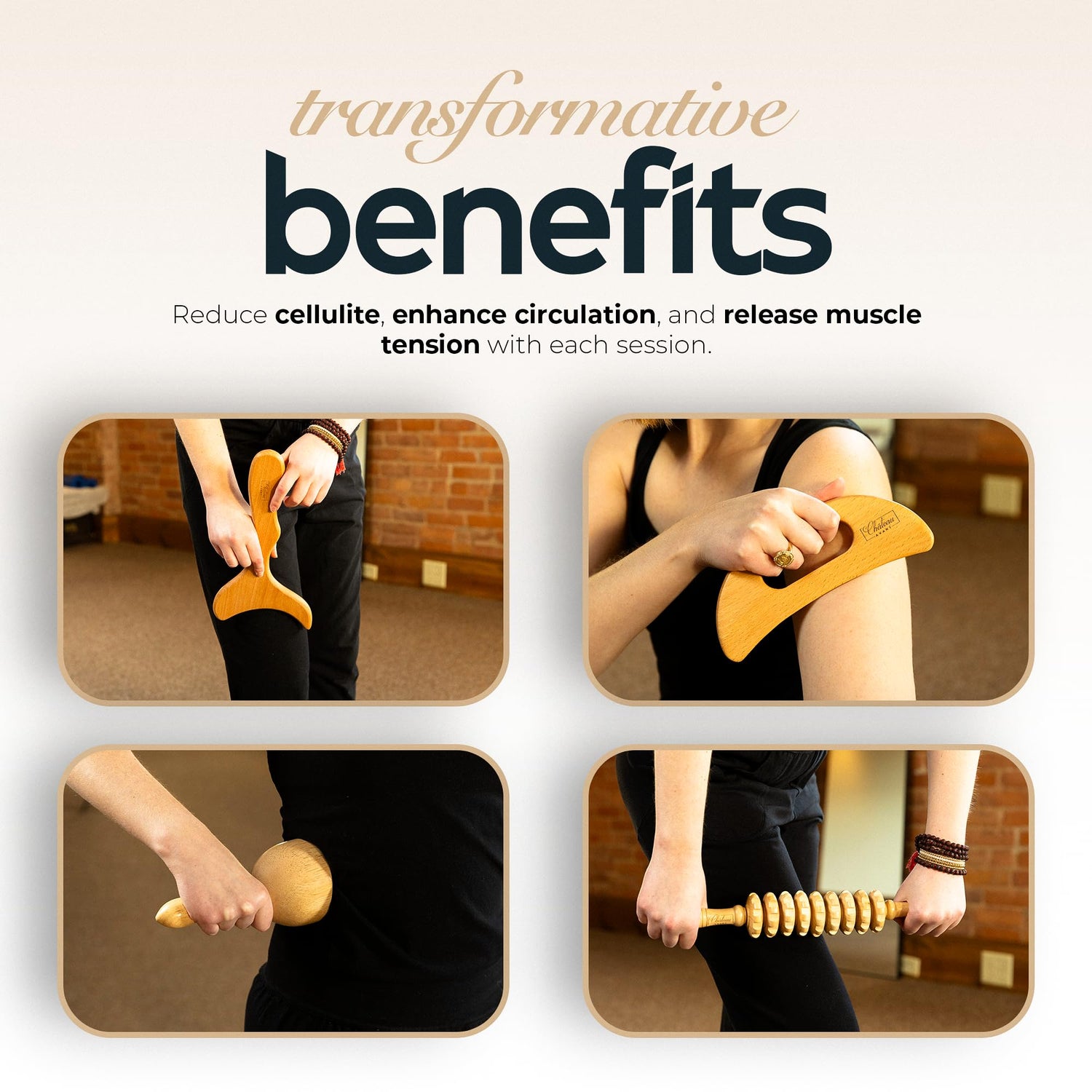 - Luxury Craftsmanship: Each tool in this set is made from premium wood, ensuring durability and a smooth, natural feel against the skin, delivering spa-quality results at home.