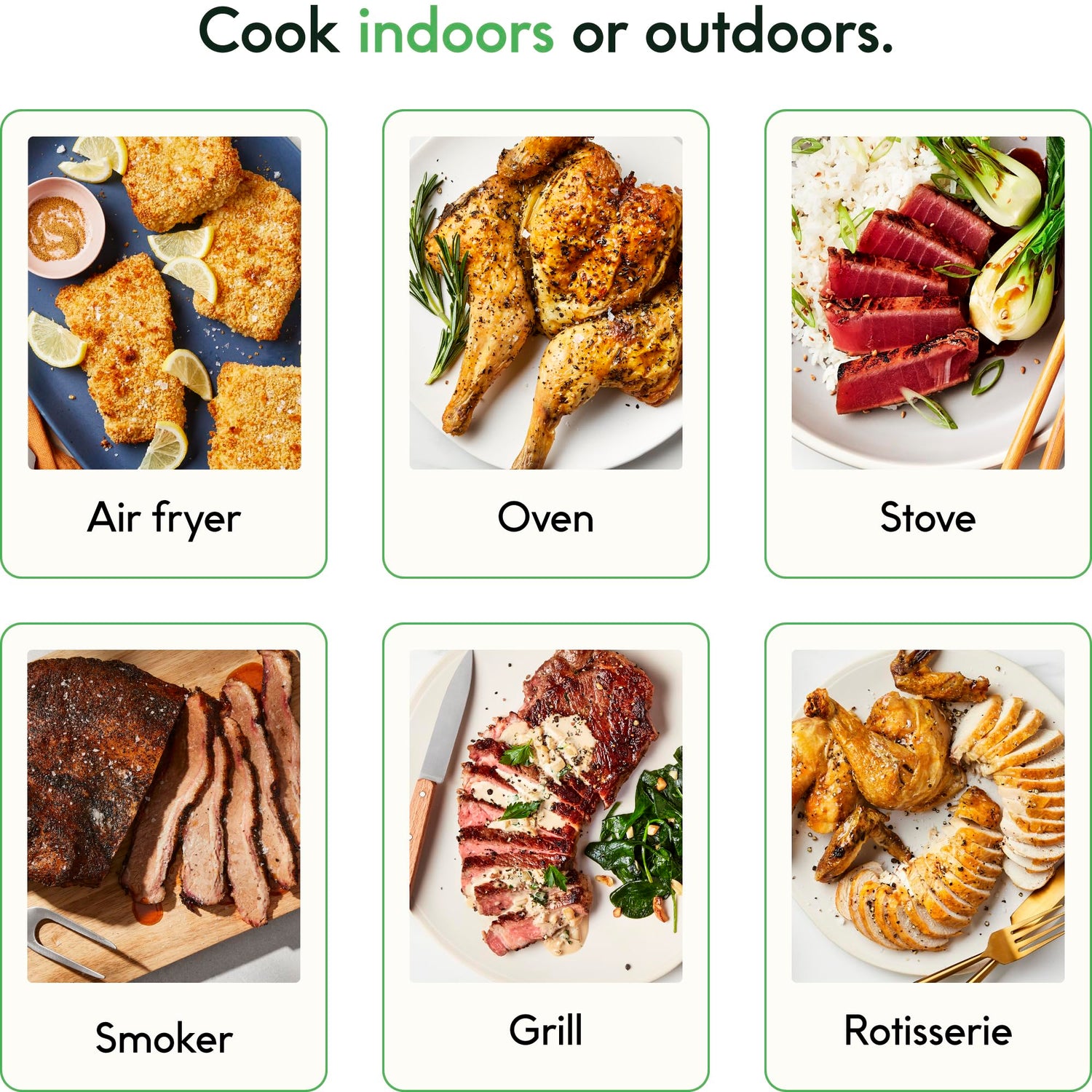 - PERFECTLY COOKED FOODS: This smart cooking thermometer takes away the guesswork with real-time internal temperature updates, flip reminders, rest indicators, estimated time left, and more.