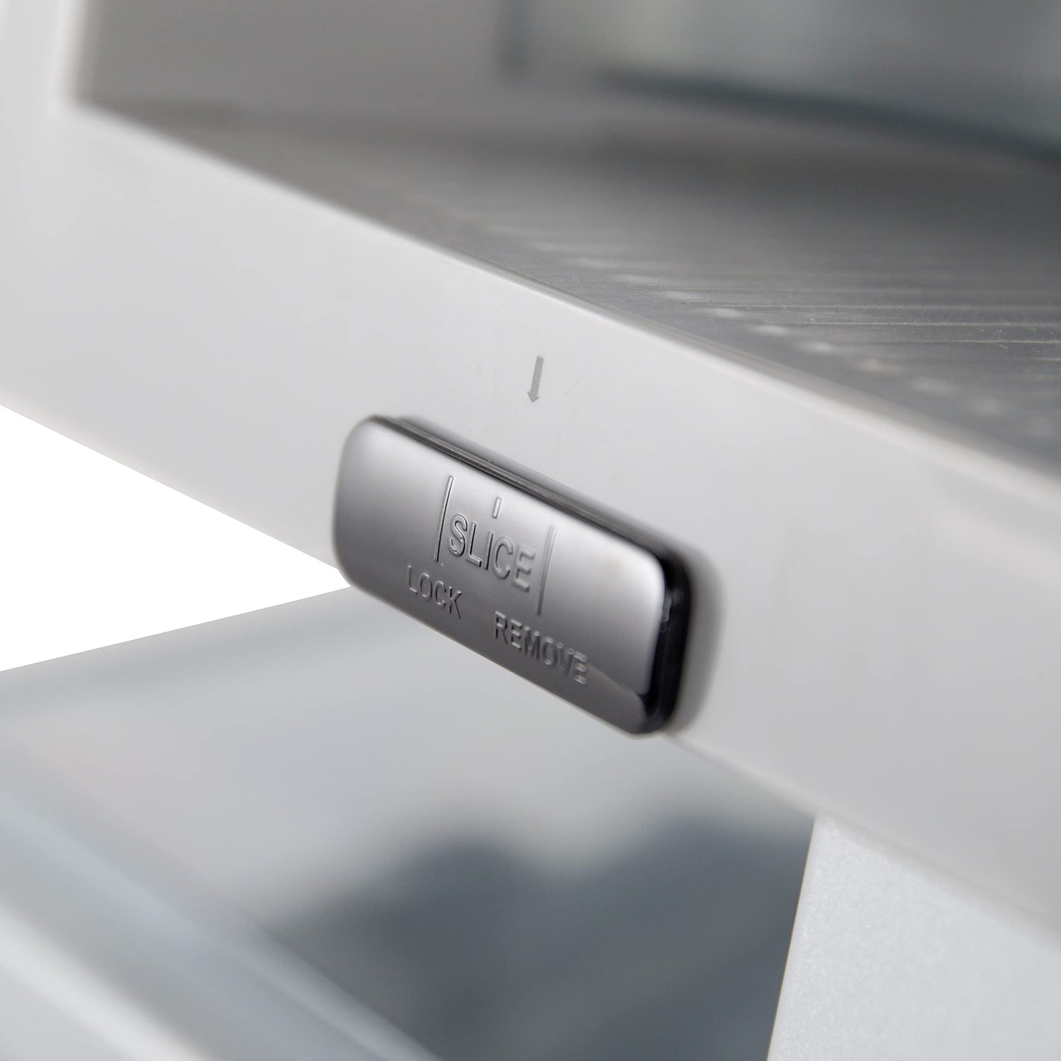 - MULTI-PURPOSE: The 7-inch stainless steel blade slices a wide variety of foods from deli thin to 3/4-inch thick slices; product is designed for non-commercial use