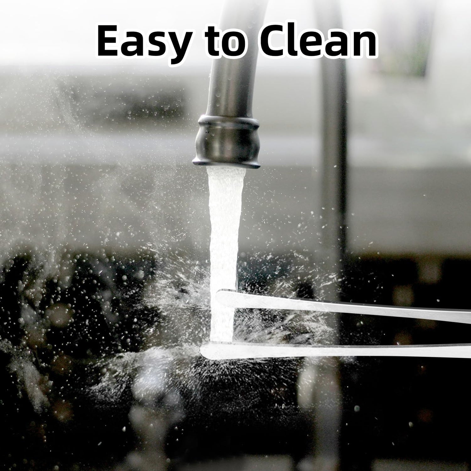 - Material - Chefbee kitchen tongs are made of stainless steel, which is not easy to deform or break and practical to use. These kitchen tweezers are reusable, have a smooth surface that can avoid food residue, and are easy to clean - just wipe with hot water. They are also dishwasher safe.