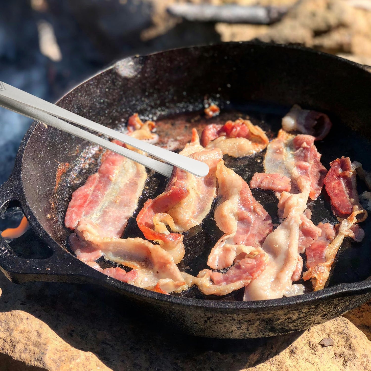 - Excellent Grip with Precision Serrated Tips - These metal tongs respond well to finger pressure, providing a comfortable and secure grip. The serrated tips of the kitchen tweezers make it easy to securely hold small objects, minimizing the risk of food slipping and sliding. These tongs are great for barbecuing because you can use them to flip prepared kebabs or arrange sausages.
