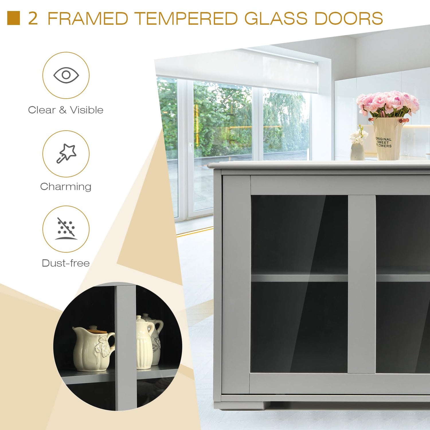 CHEFJOY Sideboard Buffet Cabinet, Stackable Cupboard Storage Table with Adjustable Shelf & Glass Sliding Doors, Wooden Credenza Coffee Bar Cabinet for Kitchen/Dining Room/Living Room/Entryway (Grey)