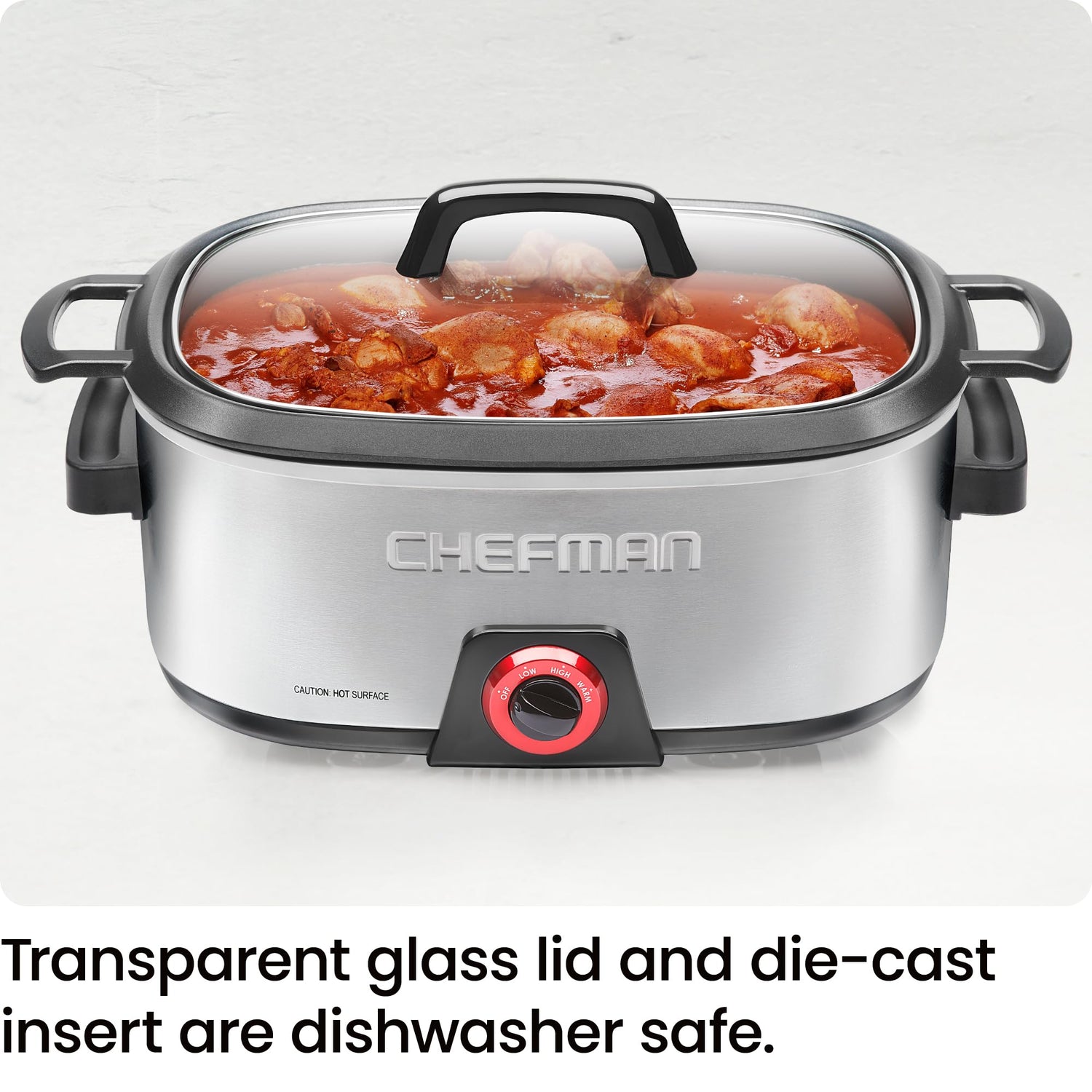 Chefman 6-Quart Slow Cooker, Electric Countertop Cooking, Stovetop & Oven-Safe Removable Insert for Browning & Sautéing, Family-Size Soups & Stews, Nonstick & Dishwasher-Safe Interior,Stainless Steel