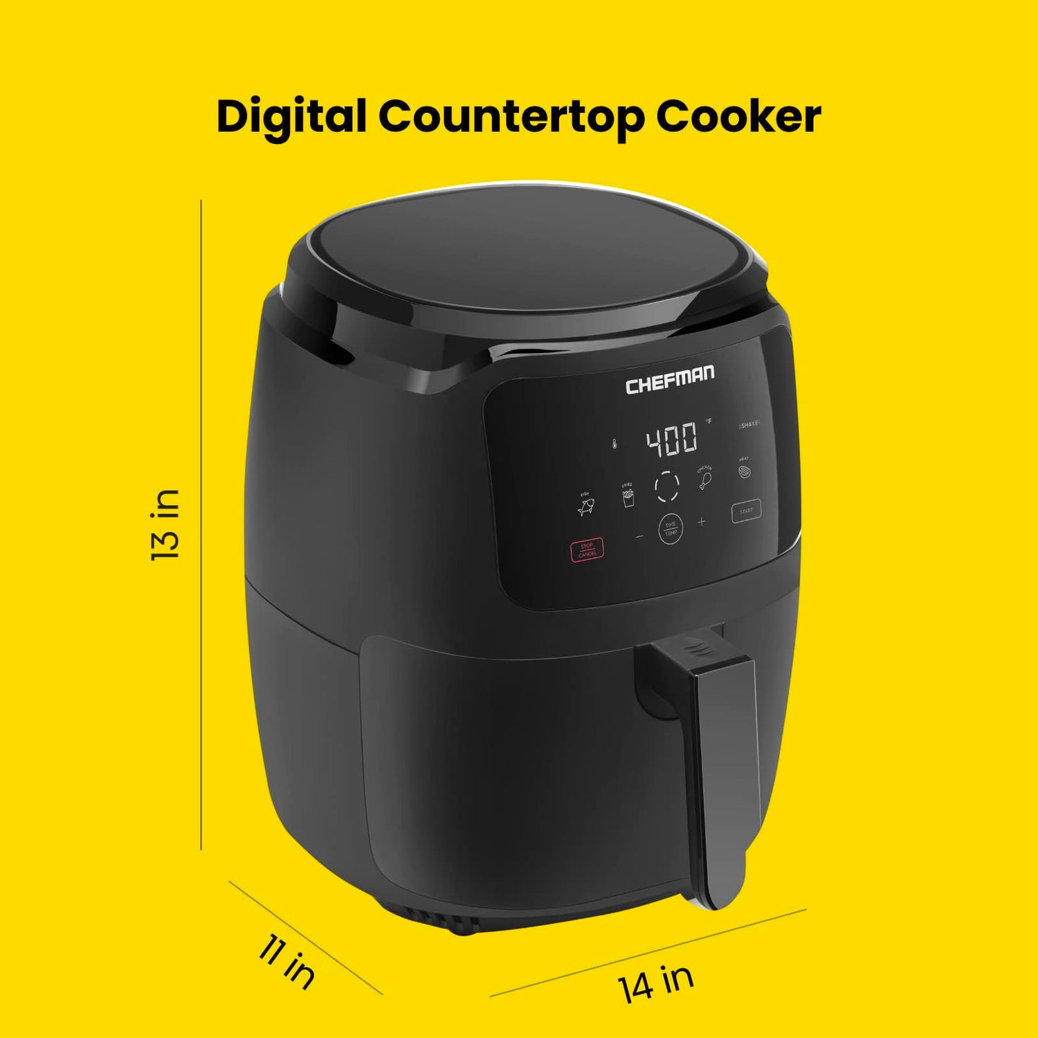 Chefman Digital Air Fryer, Large 5 Qt Family Size, One Touch Digital Control Presets, French Fries, Chicken, Meat, Fish, Nonstick Dishwasher-Safe Parts, Automatic Shutoff, Black