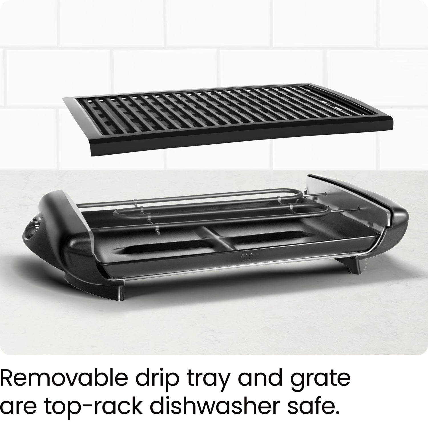- EASY TO CLEAN: Non-stick surface ensures meals will slide off the grill and onto your plate with ease. Disassembles for easy cleaning; grill top and non-stick water tray are removable and dishwasher safe so cleanup is as easy as grilling!
