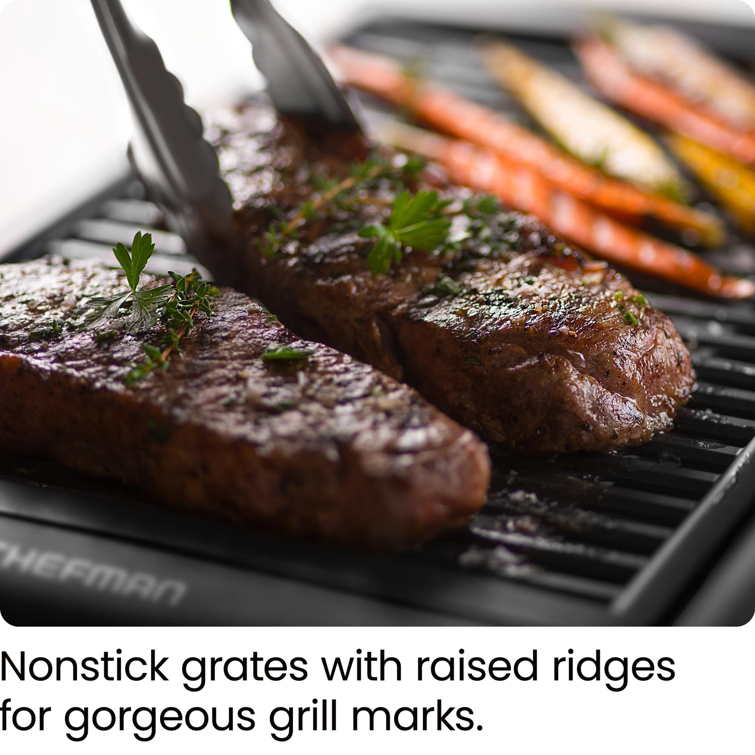 Chefman Electric Smokeless Indoor Grill w/ Non-Stick Cooking Surface & Adjustable Temperature Knob from Warm to Sear for Customized BBQing, Dishwasher Safe Removable Water Tray, Black