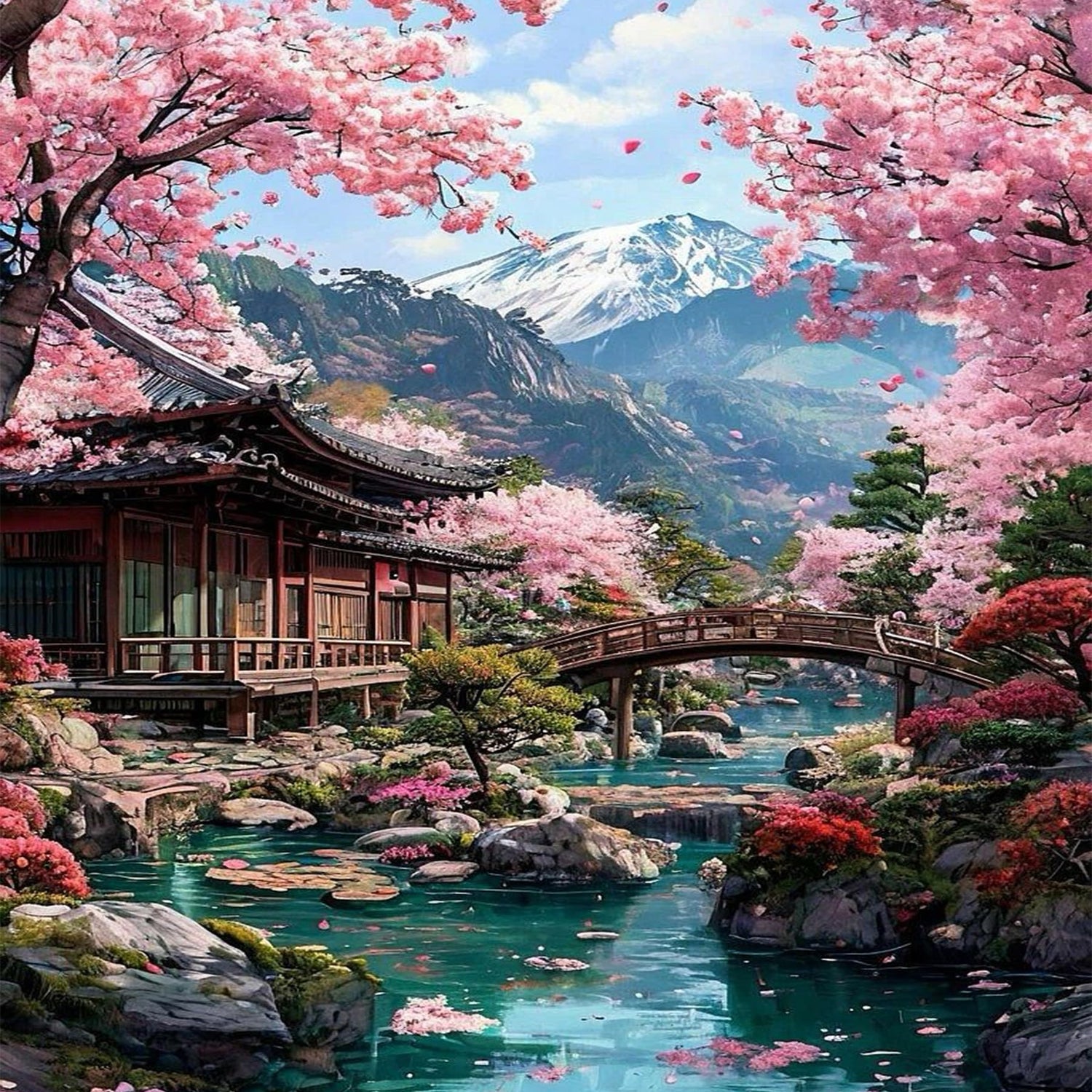 Cherry Blossoms Diamond Art Kits for Adults, DIY Landscape Diamond Painting Kits for Beginners, 5D Full Round Drill Diamonds Art Painting for Home Wall Decor Gift 12x16 Inch