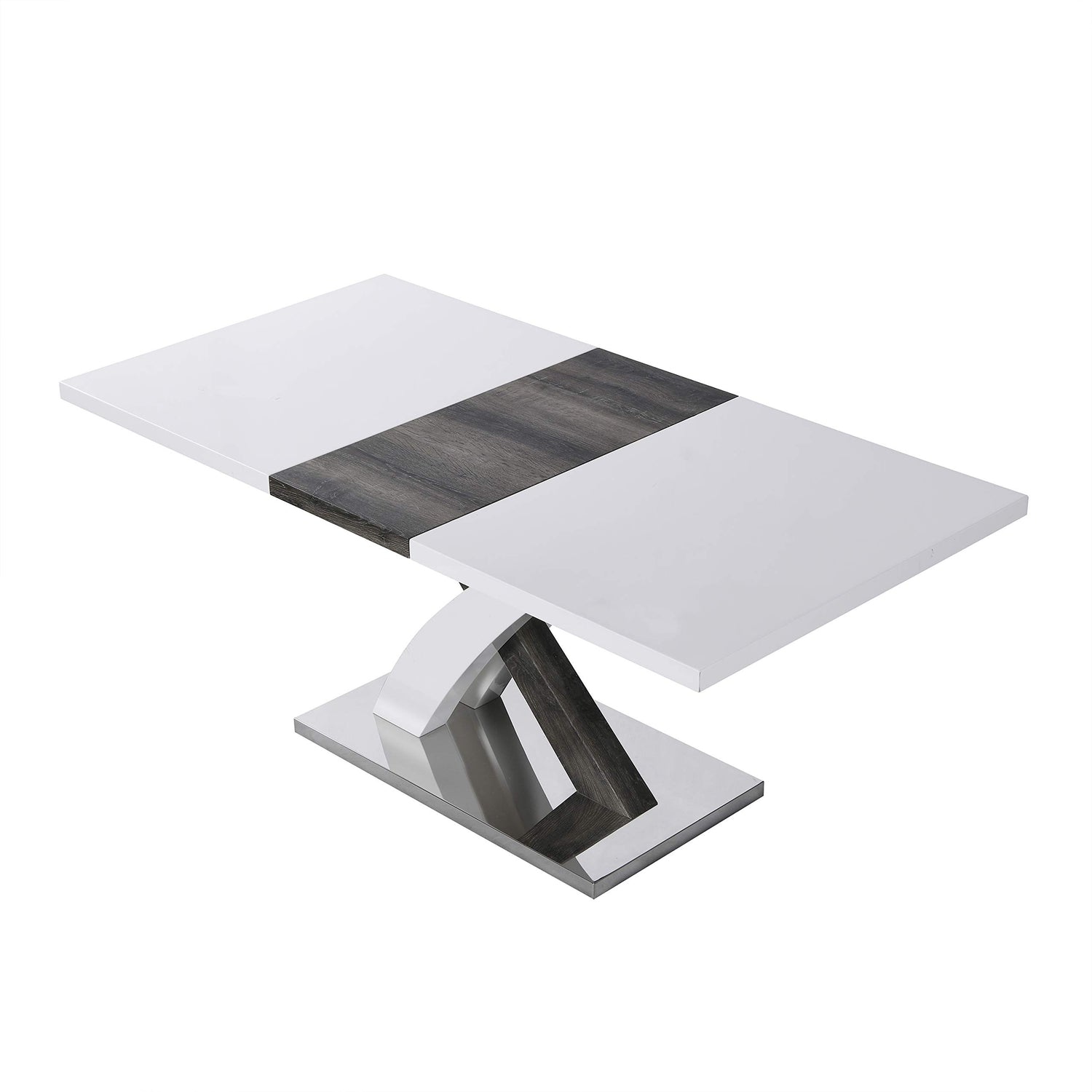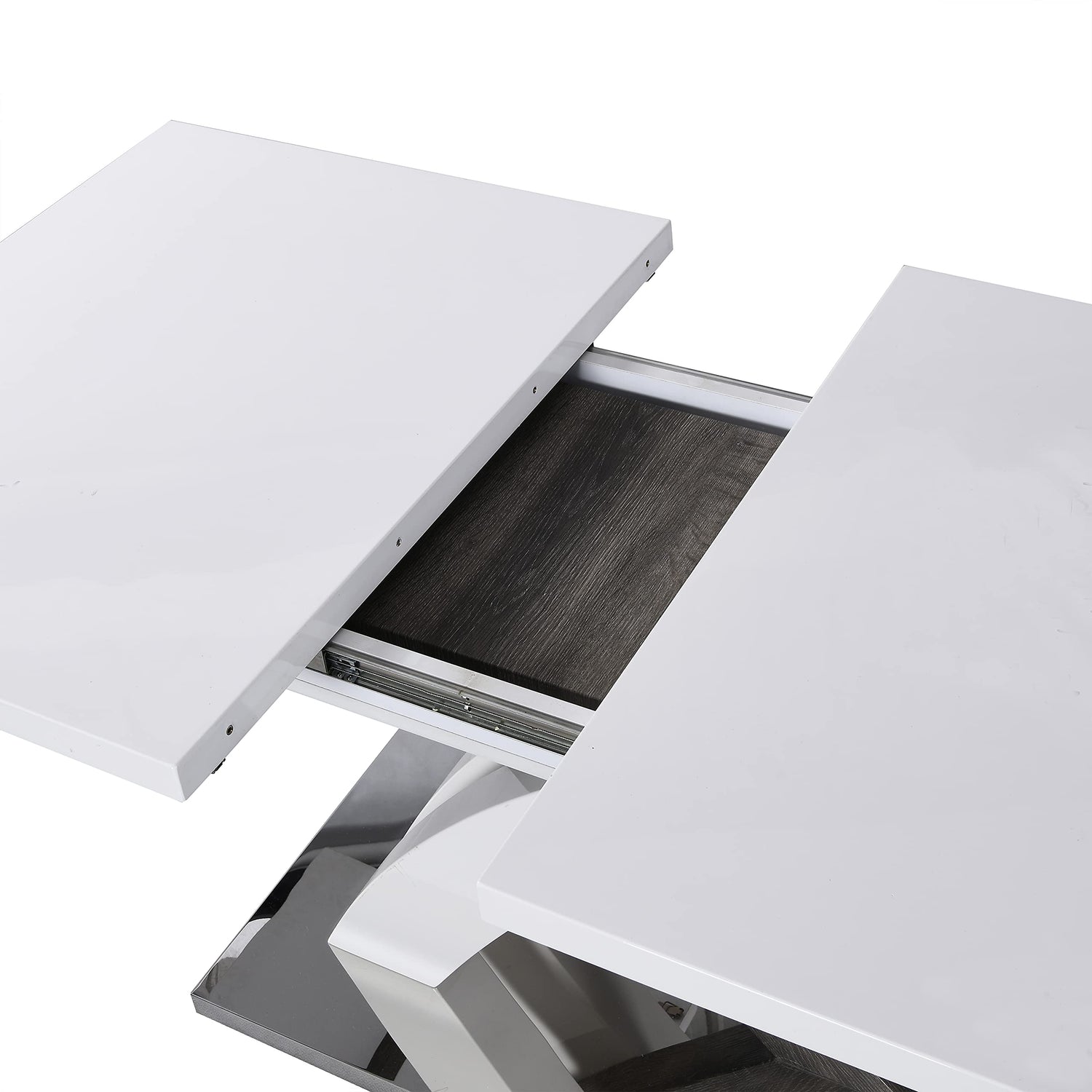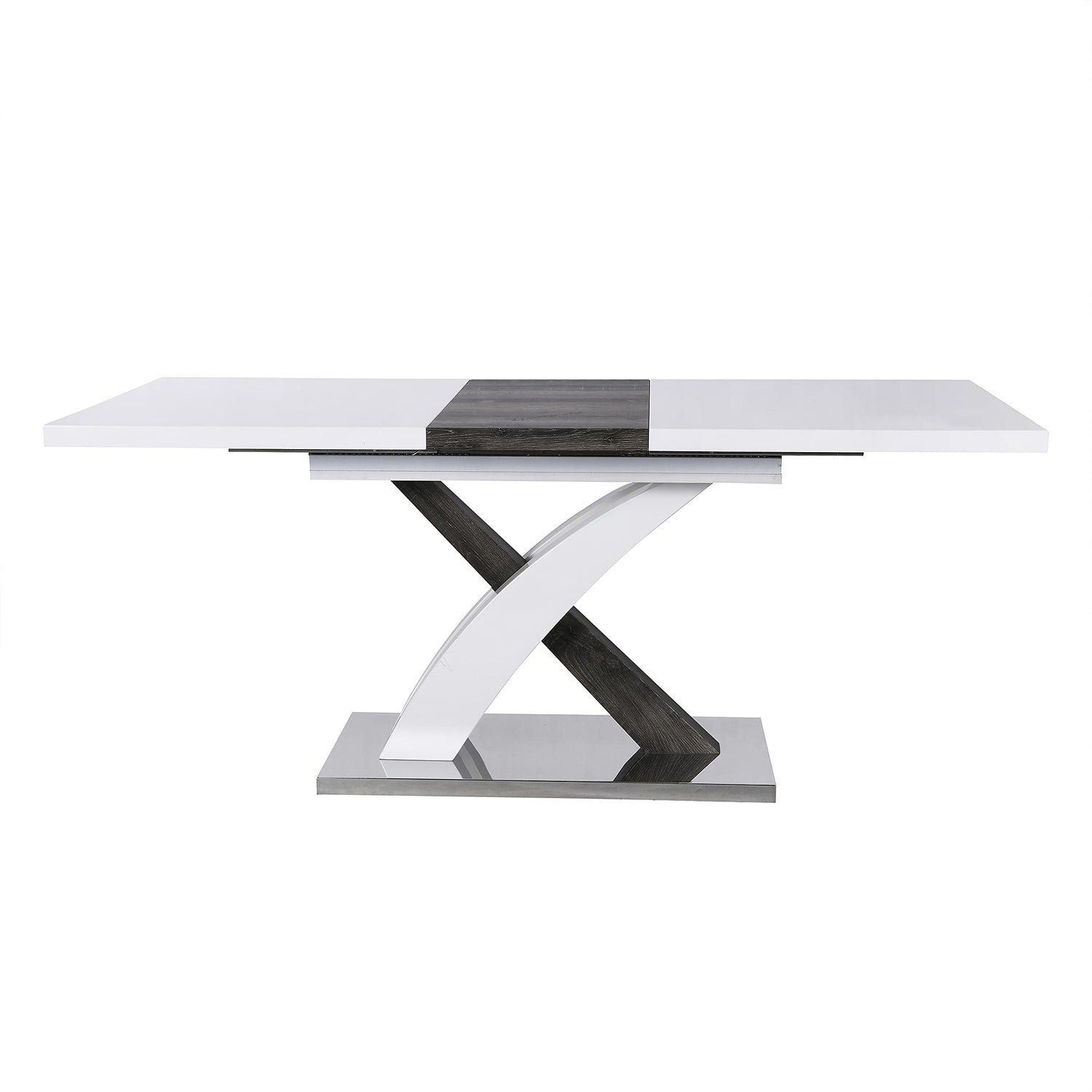 Cherry Tree Furniture High Gloss White Extendable Dining Table 6 to 8-Seater with Stainless Steel Base