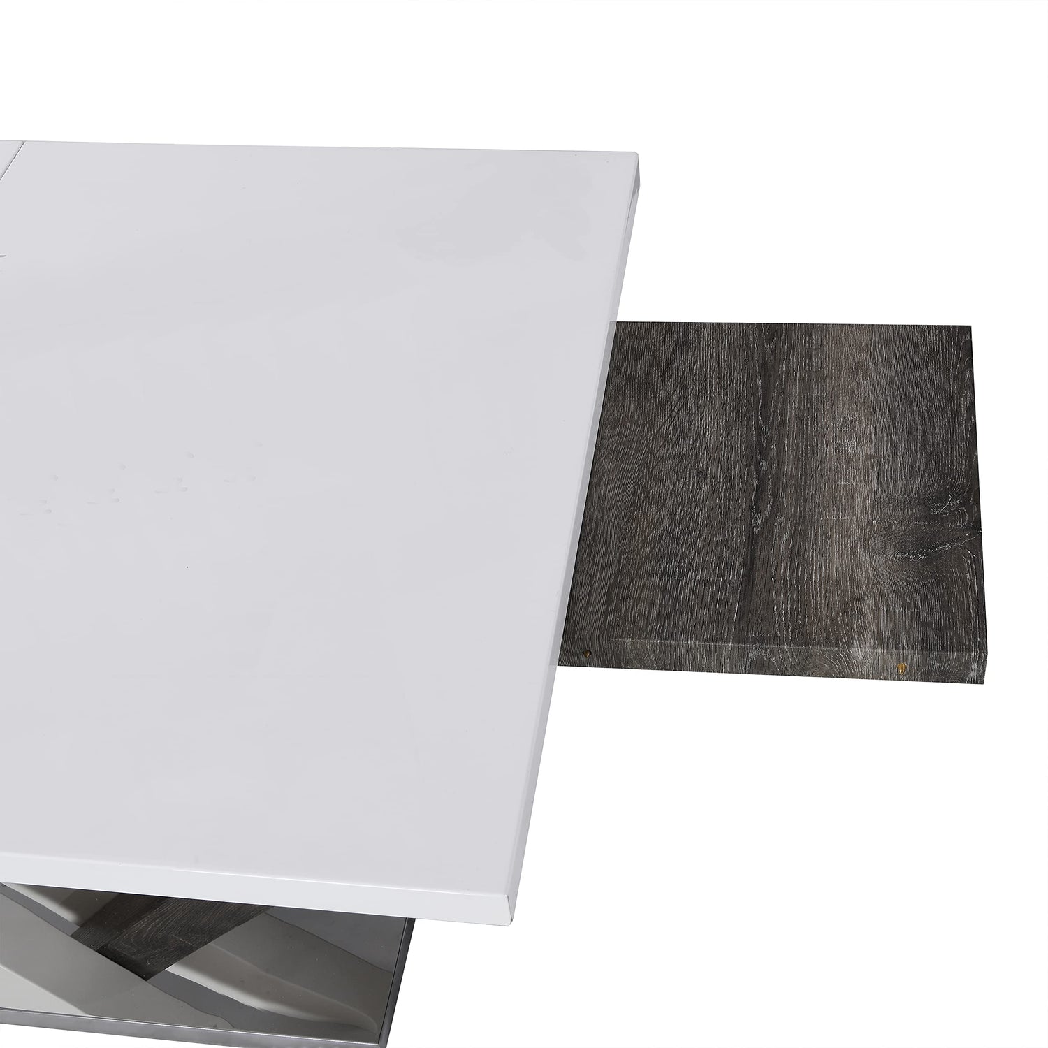 - To extend the table top, just pull either end and lift up the extension panel stored discreetly under the table