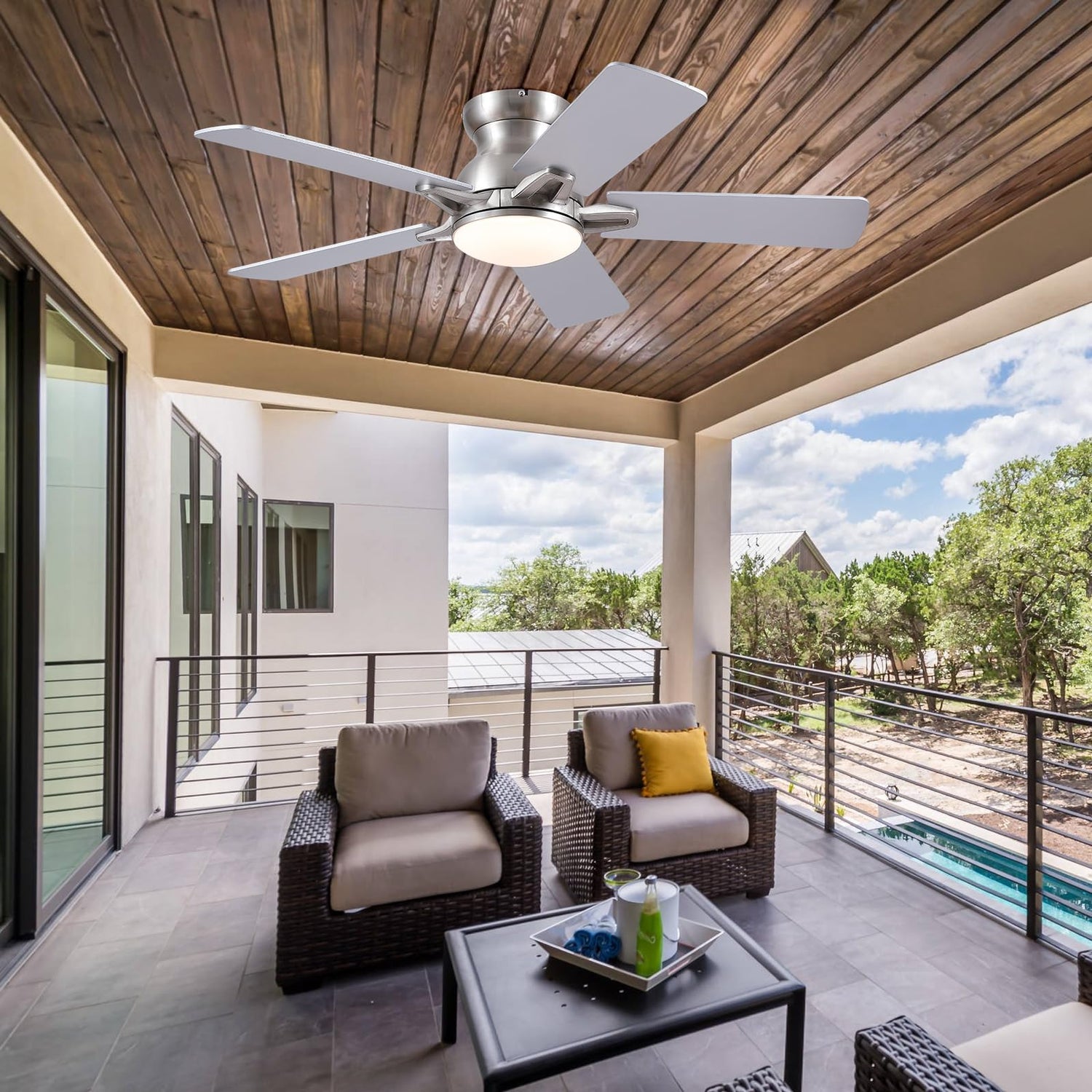 CHESUR Flush Mount Ceiling Fans with Lights Remote/APP Control, Modern Ceiling Fan Light with Timer Setting and Silent Motor, Low Porfile Reversible Fan Light for Indoor/Outdoor Use