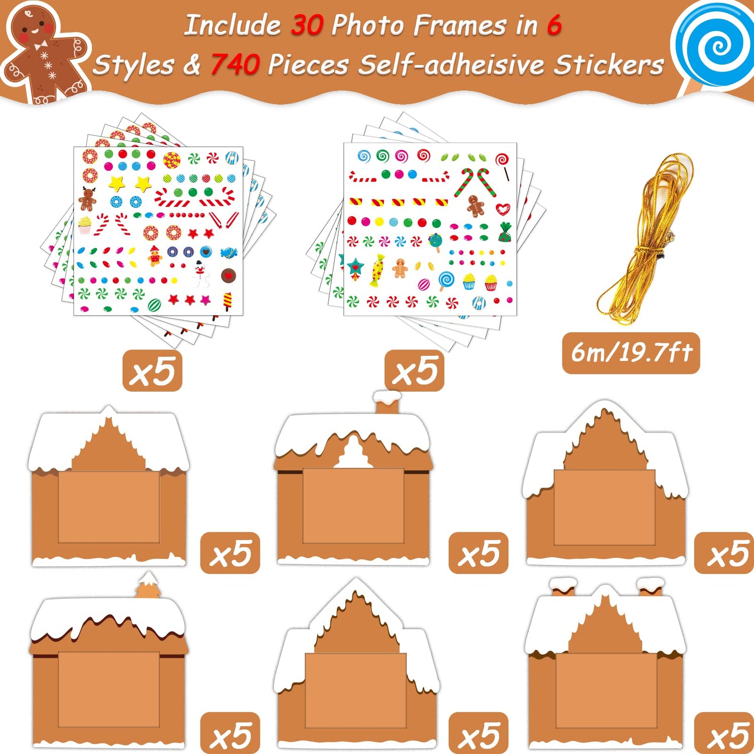 - 【Package Include】For each set, you will get 30 pieces Christmas gingerbread house picture frames designed in 3 different shapes; and the package comes with 10 sheets of self-adhesive stickers, over 300 pieces, they are enough for you to enjoy your DIY time!