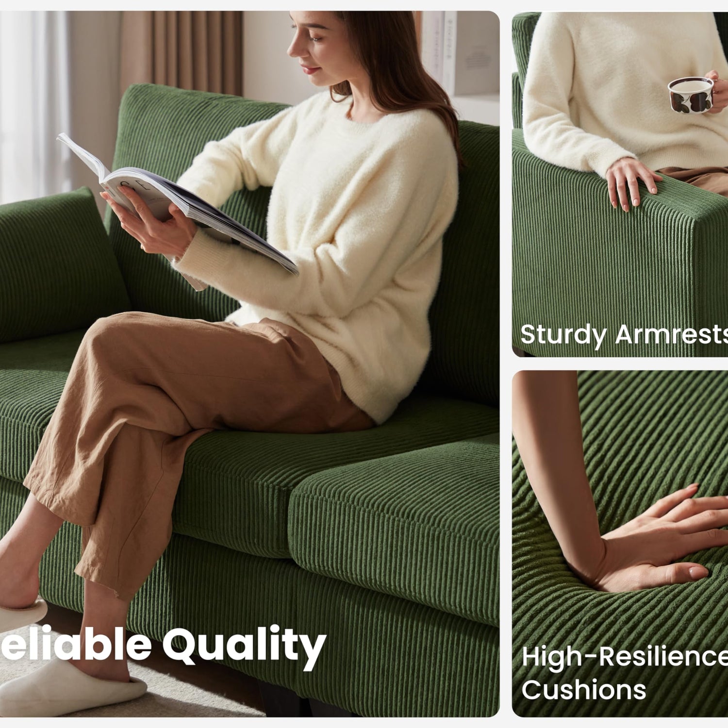 - 【Unmatched Comfort - Sink into Softness】Experience the luxurious feel of high-density foam cushions covered in premium, pet-friendly corduroy fabric. The soft, skin-friendly material ensures a comfortable seating experience, making it perfect for relaxing after a long day. This sofa promises to be your favorite spot in the house.